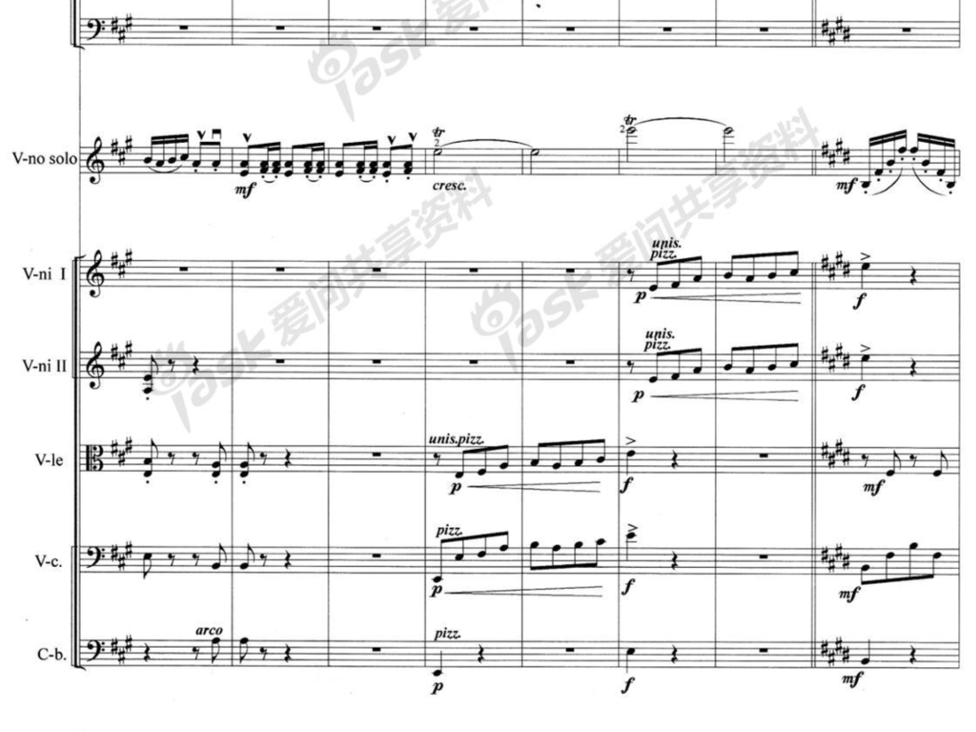 The string group in an orchestra has a very important role, which is behind the main melody as a background. A large number of string tremolo (on the same note or fifth) appeared in the Franck symphony, and it was replaced by a sixteenth note in Calvin Hampton's transcription.
