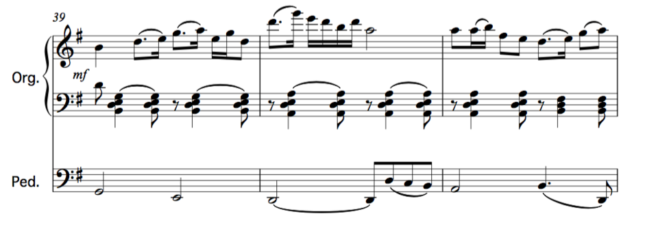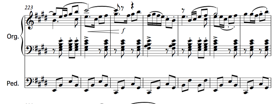 Woodwind instruments sound, brass instruments sound and organs sound are all caused by airflow into the pipe, the Wood Instrument and Brass are the most convenient to switch to the organ. Flute, oboe, and clarinet often have some solo sentences, so the choice of stops in the organ needs to be highlighted in the selection of the tone. Also trying to do as more similar as possible with the playing articulation for the organ. Except that, during my transcription, I also need to pay attention to the strength of the voice in the entire song.