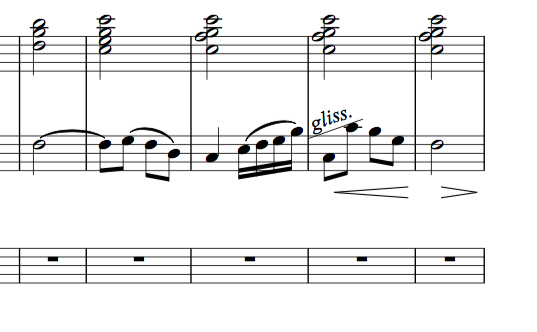 3. Listen to the audio with the score and determine the main melody and accompaniment part. I will put the main part as far as possible in the right handed position. Doublebass, Tube and other low tone instruments are usually placed on the pedle.