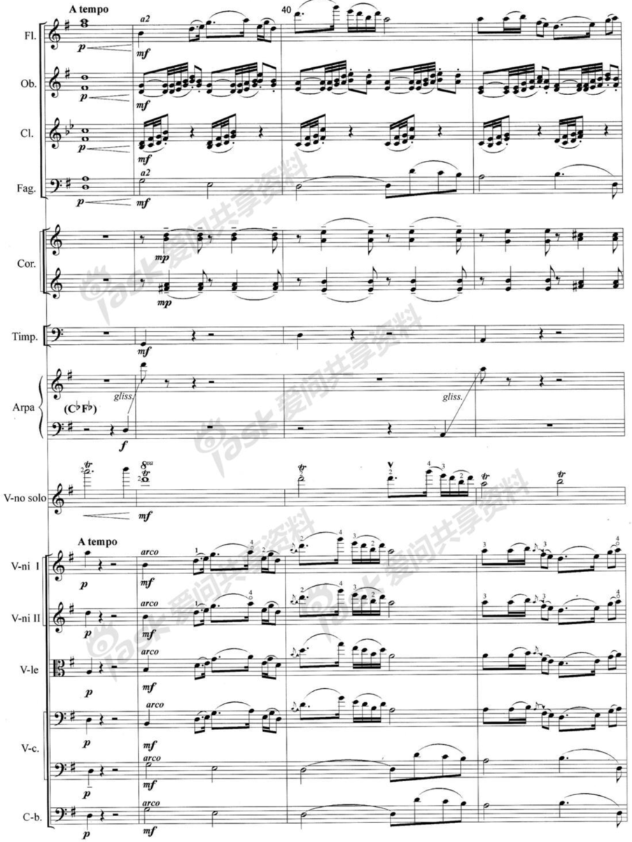 Next, I will use the three groups of instruments, string instruments, woodwind instruments, and brass commonly used in the Symphony Orchestra to combine the transcriptions of Edwin Lemare and the transcriptions of "The Butterfly Lovers" Violin Concerto as some examples to analysis.
