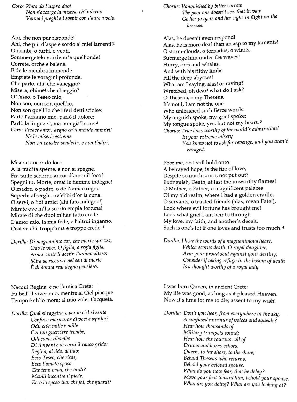 O Teseo, o Teseo mio.../...ed io più non vedrovvi, o madre, o padre mio. = O Theseus, o my Theseus.../...while I will never again see you, o Mother, o Father of mine.