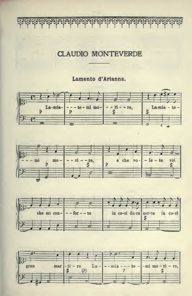 The printed edition as we know it, ends with the fifth section, and the Lamento is usually performed till there (“chi tropp'ama e troppo crede”). But my choice as a singer was to study the whole music piece since the rest of the opera went lost, it would be a shame not to know the rest of the music that Monteverdi wrote, even if officially the lamento ends in bar 94. Right after that in fact, the dialogue with Dorilla begins and the sections of Arianna become shorter, precisely because this is a back-and-forth between the two characters and not a solo aria anymore.