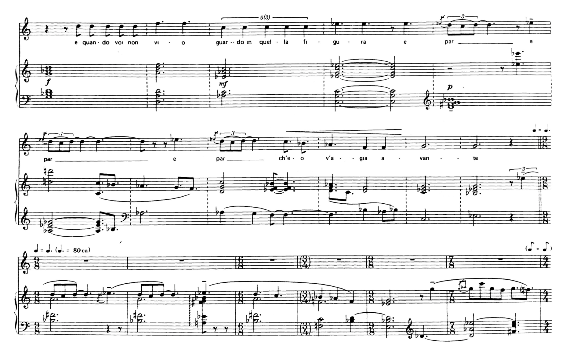 In this fragment, it is possible to notice how the small melody that accompanies the words “e par” (which is repeated three times) it is re-elaborated and commented by the piano immediately after.