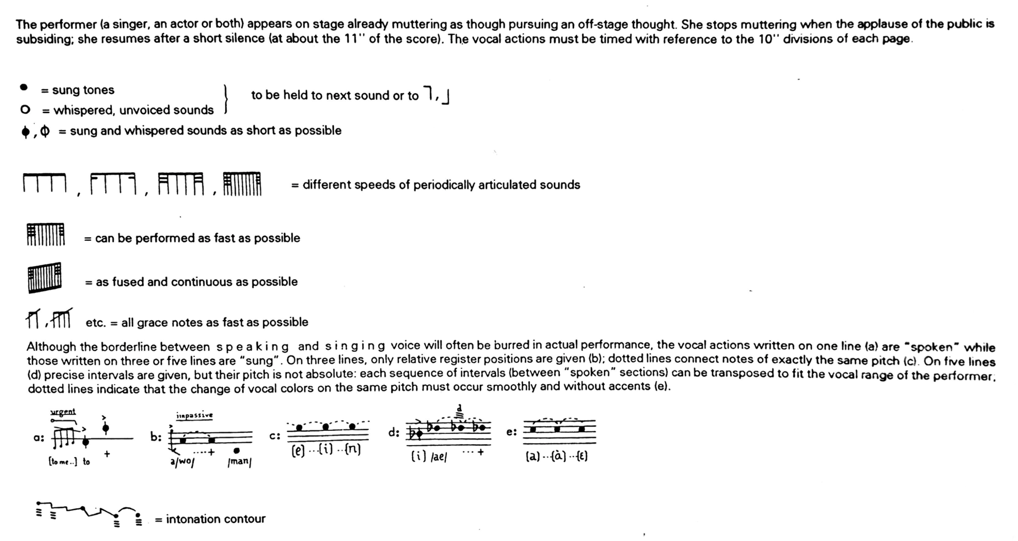 For Berio, singing is a theater of actions that he calls “vocal gestures”, which are directly connected to human emotions. More specifically a gesture is naturally expressive because it refers to a collective sense of social conventions (for instance, we all agree that coughing to clear the voice indicates a wish to draw the attention, or that producing an inhaled sound indicates a reaction to a shock/surprise). When this gesture is “stolen” from his normal context (in this case everyday life scene between people) and is transferred in music, it's already theater, because it becomes a new expression. Berio talks about “short-circuit” between old and new life of the gesture: thanks to this metamorphosis, the listener finds himself involved in a surprising new expressive language of which he can recognize the material.