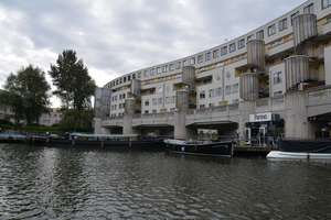 "Medieval canals intersect with those that look like highways. How does the flow transition between these different infrastructural levels of the canal system?"
