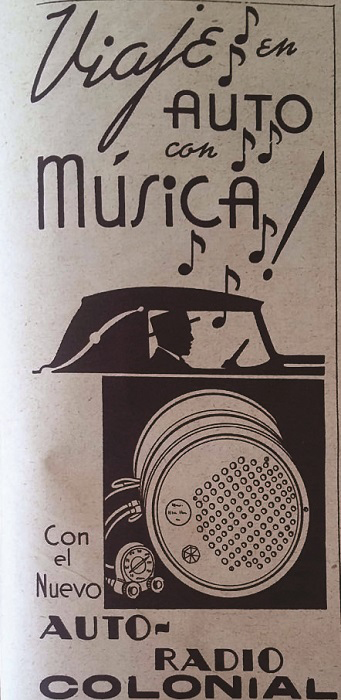 Another kind of sound that needed to be abolished was the parasite noise of radiotelephony communications, the interference produced by electronic devices in radial transmission. The first Argentinian radiophonic communication was the public broadcasting of an opera by a group of medical students from the Coliseo Theater’s terrace. This happened in 1920, marking the beginning of the possibility of hearing voices transmitted over a wide range (at first up to 20 kilometers). Within a decade, portable radios and receivers for cars became available.