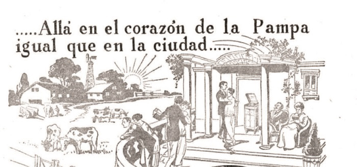 Figures 6 and 7: Advertisements highlight the relative absence of noise in reproductions and the possibility of listening to music from around the world in any time and place. Monarch gramophone, the “unbeatable booster of the human voice,” allows one to enjoy “the theater at home,” whereas the Concertola erases the distance between city and countryside (“There in the heart of the Pampa just as in the city”).