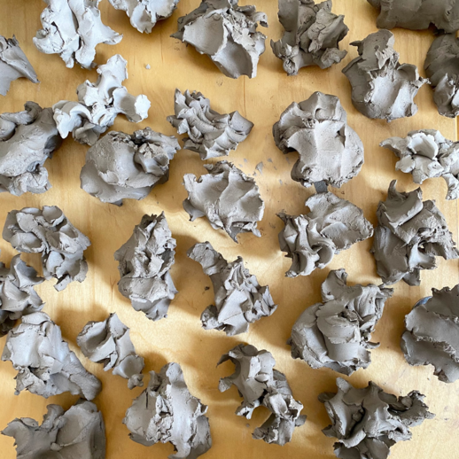 As with everything around us, on a particle level, clay physically changes moment by moment. With clay, however, this process becomes visible to us. A clay pebble in the palm of your hand will begin to dry and stick to your skin and within moments we feel the change in our hands. Before firing the clay, we must allow the material to dry slowly, so it doesn’t crack as the once fluid particles become rigid. To work with clay requires a certain level of being with the material.