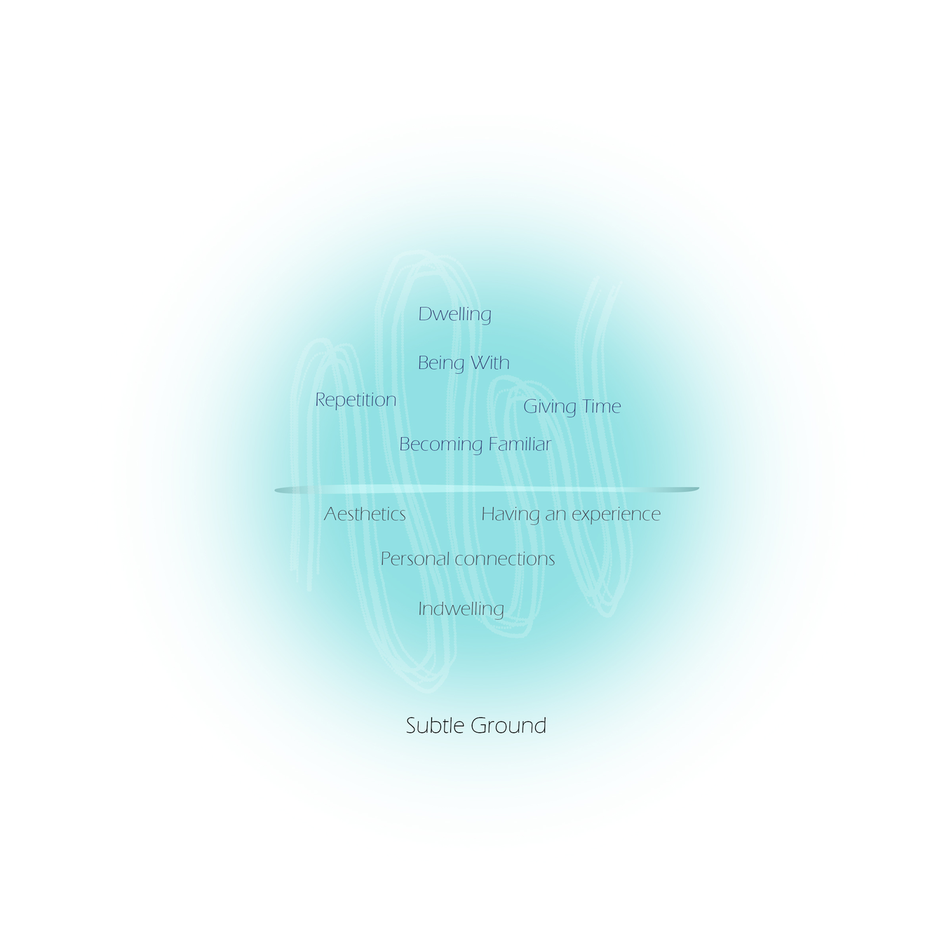 In this context, dwelling means giving time to a process and spending time with the feelings and sensations that belong to that particular process. To dwell in is to be able to focus, to stay with the practice or the process in an open active way, to continue, and to return with growing familiarity. The Subtle Ground emphasizes the idea of dwelling and the process towards indwelling. It is about connectedness, it is an organism–environment interaction, it is about the aesthetics in making.