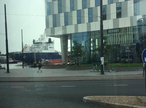 The gas-tanker Yuriy Kuchiev was named after the captain of the Soviet nuclear-powered icebreaker Arktika (1975-2008). My entanglement with the vessel started in May 2019. For four months, I daily saw them through the tram window while I was going from Jätkäsääri to Hakaniemi’s UniArts Helsinki campus. They were built at the Arctech Helsinki Shipyard, owned by the Russian State-owned United Shipbuilding Corporation, in front of Huutokonttori tram stop. By looking at them every morning, I felt grounded and able to go through the day.