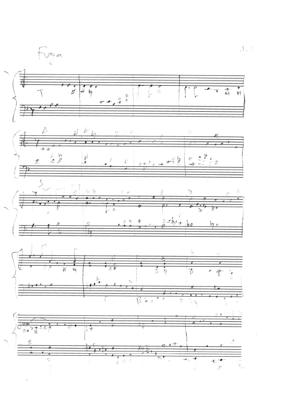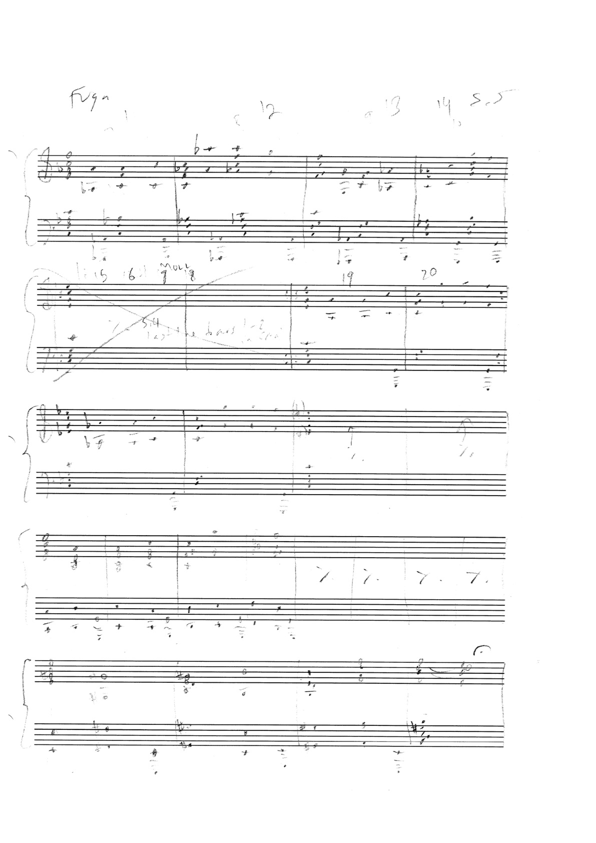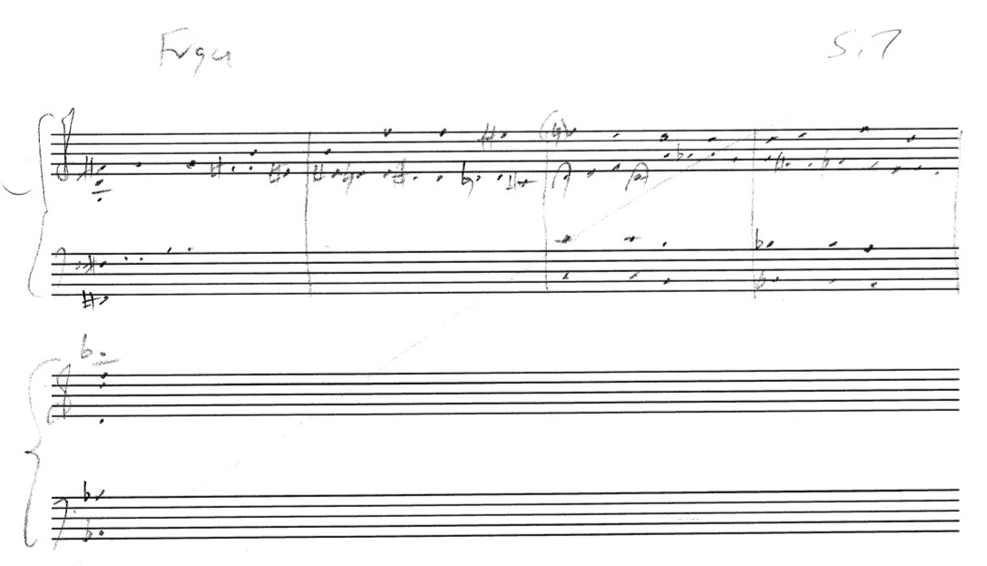 one more initial attempt at harmonizing a chromatic bass line, and setting the fugue theme in a micro-canonic manner:
