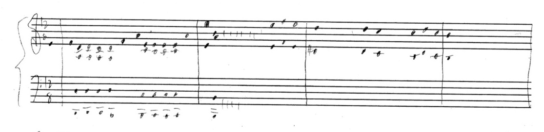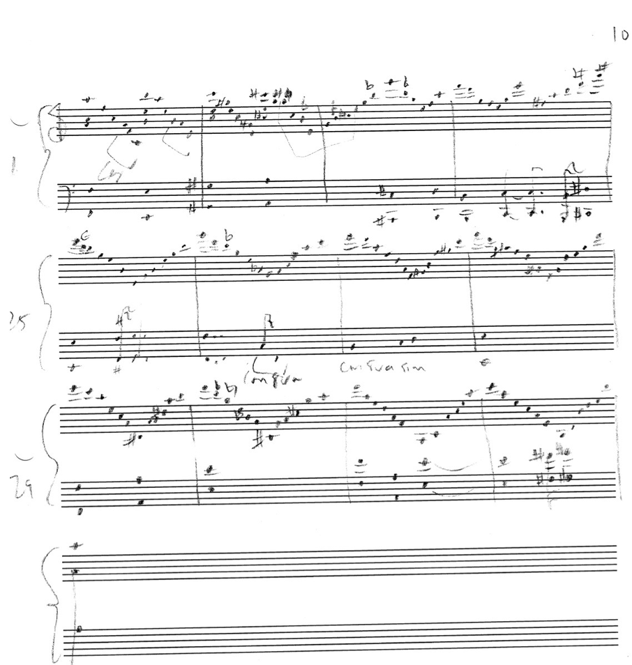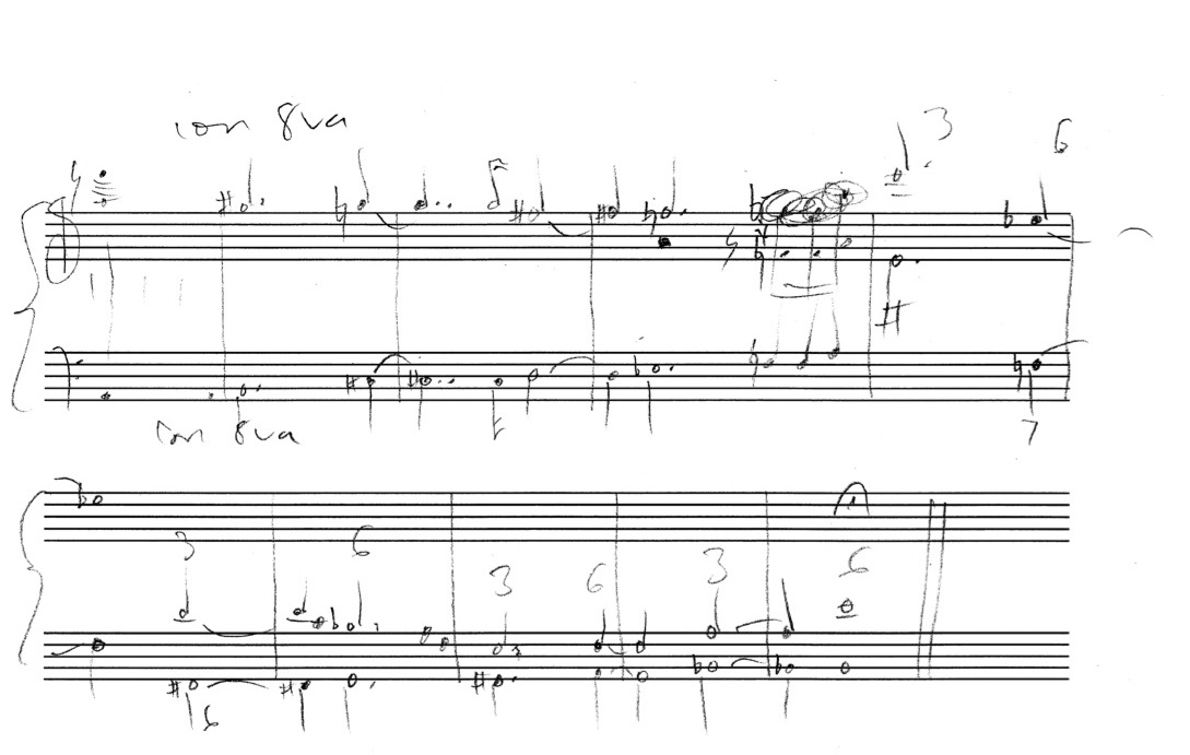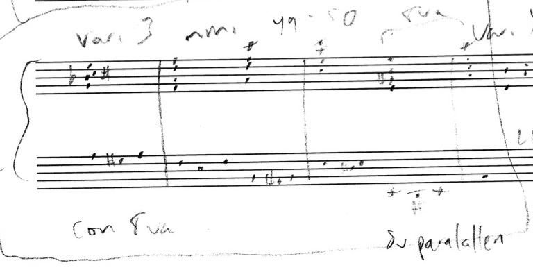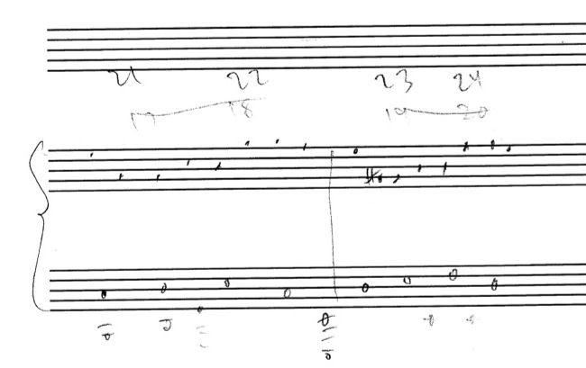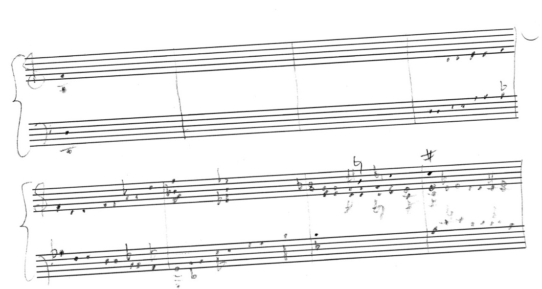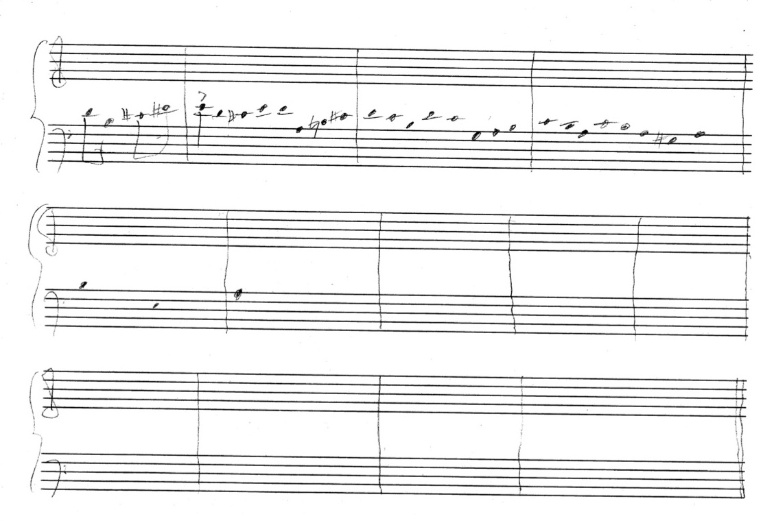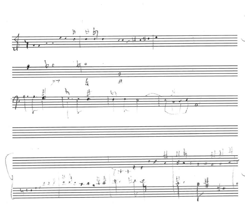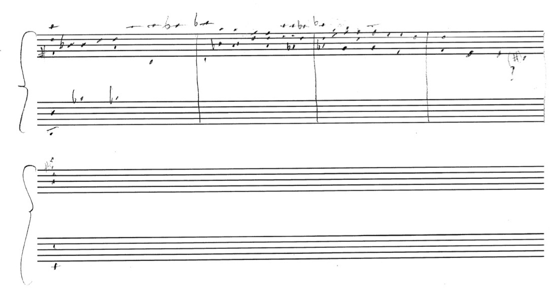 a sketch – made later – of music that was eventually inserted between the third and second to last staves on the above page: