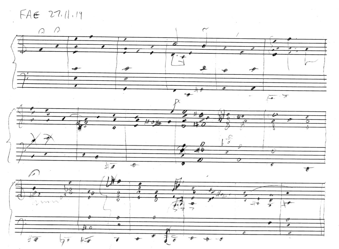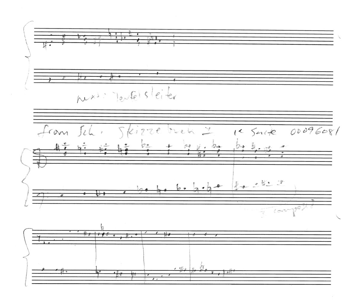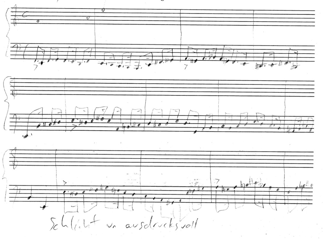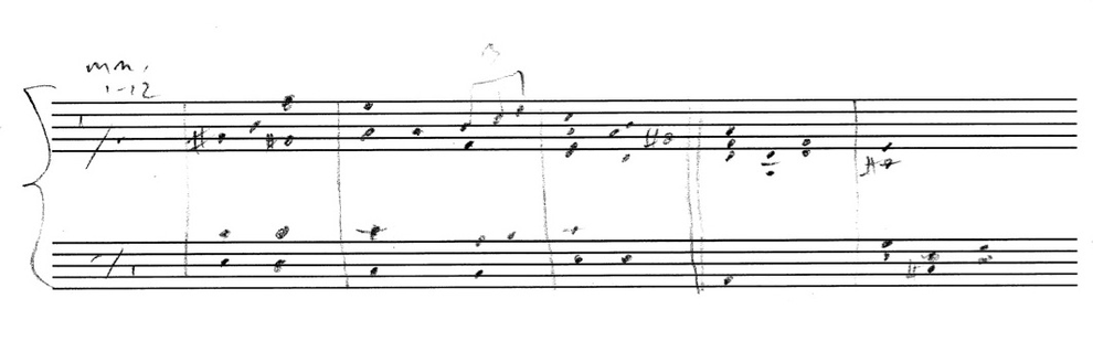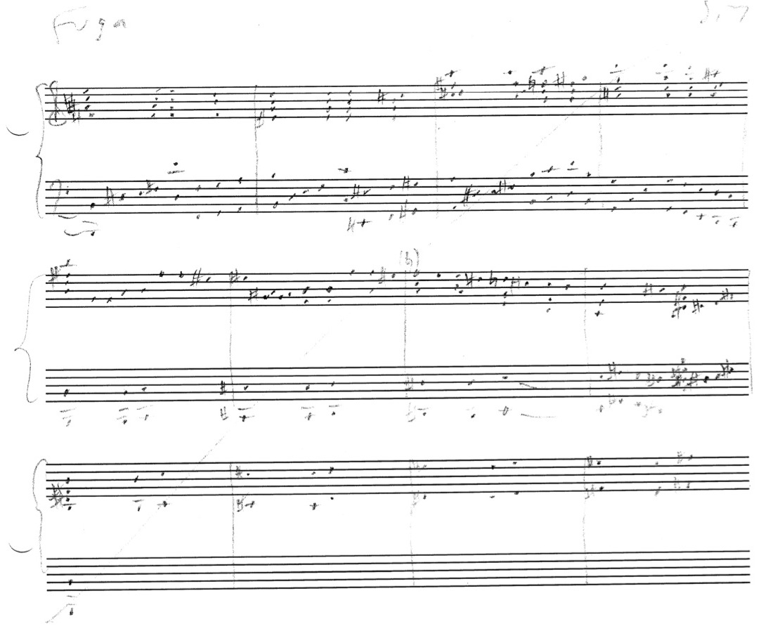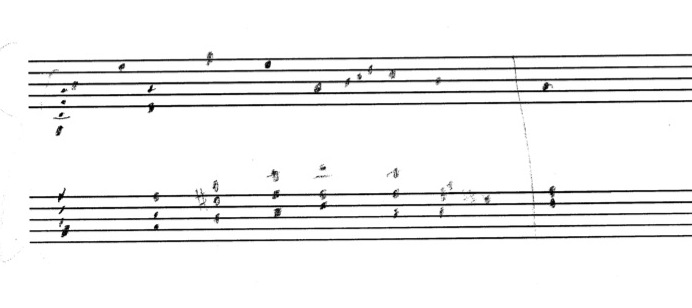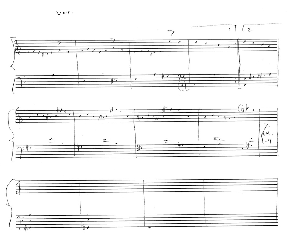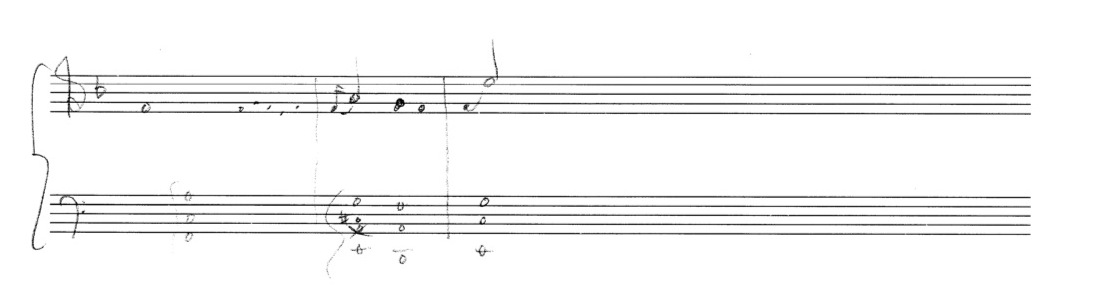a sketch – made later – of music that was eventually inserted between the third and second to last staves on the above page: