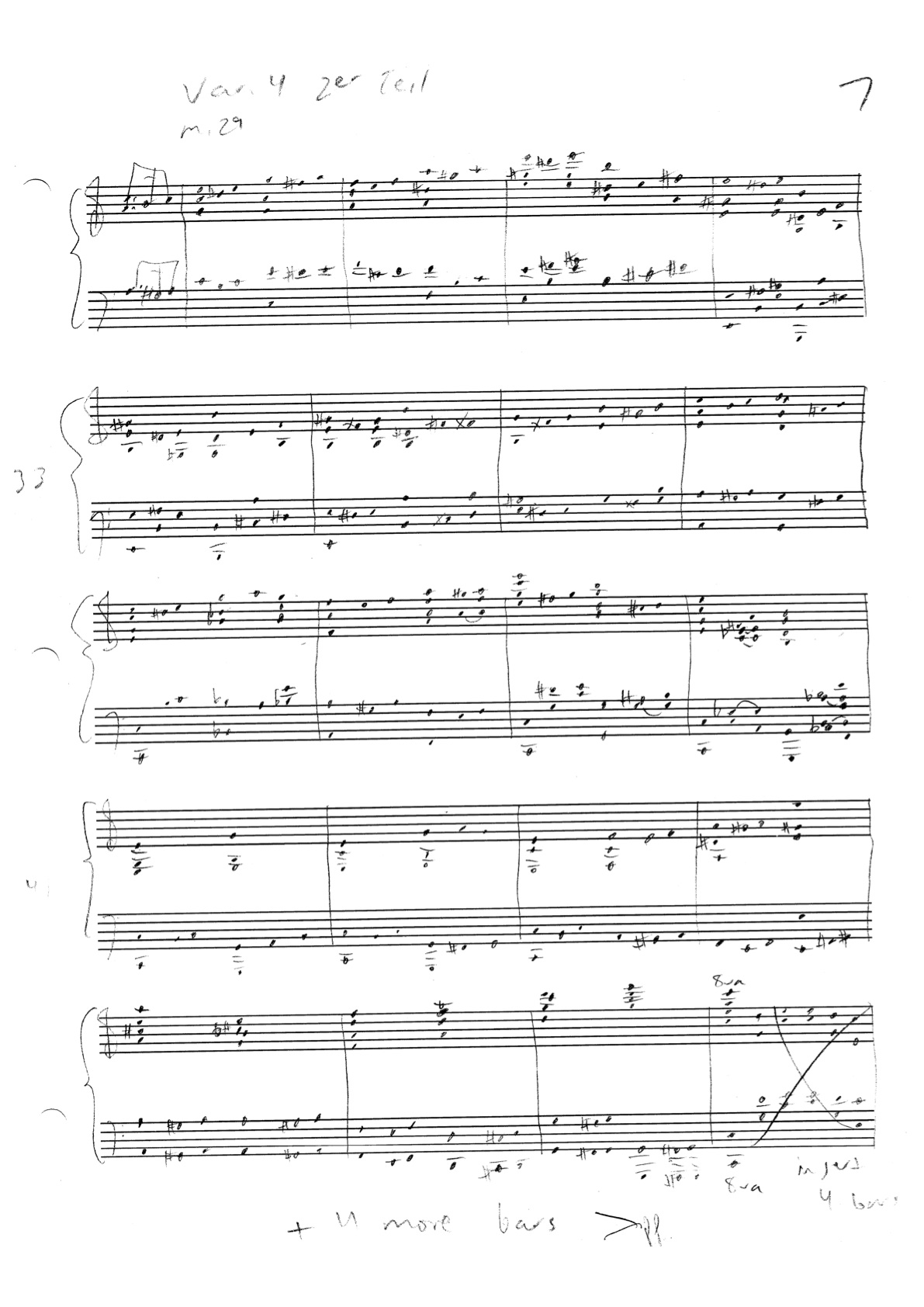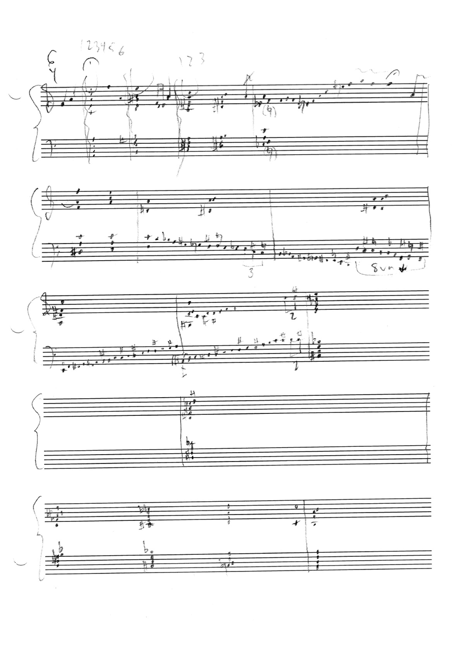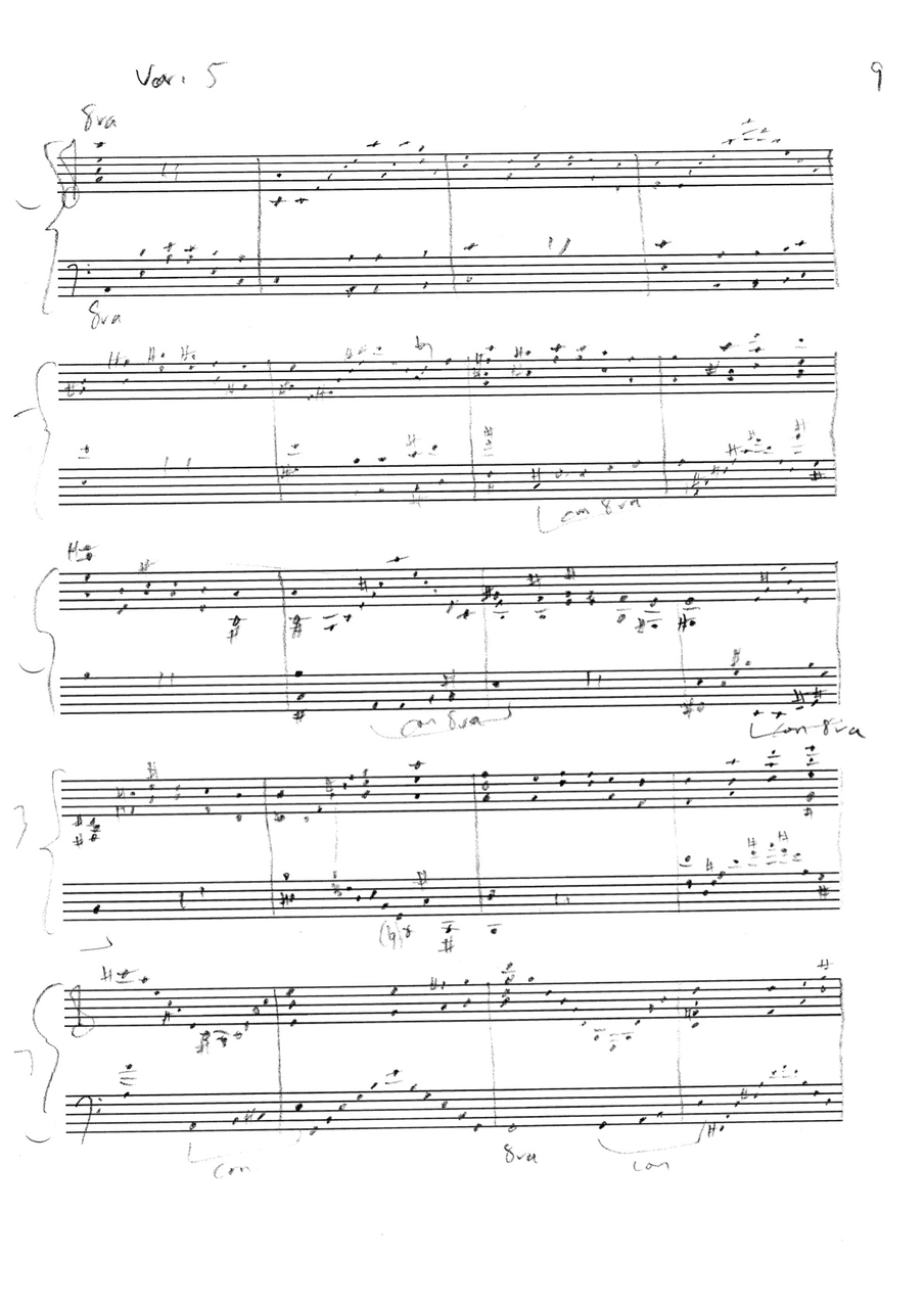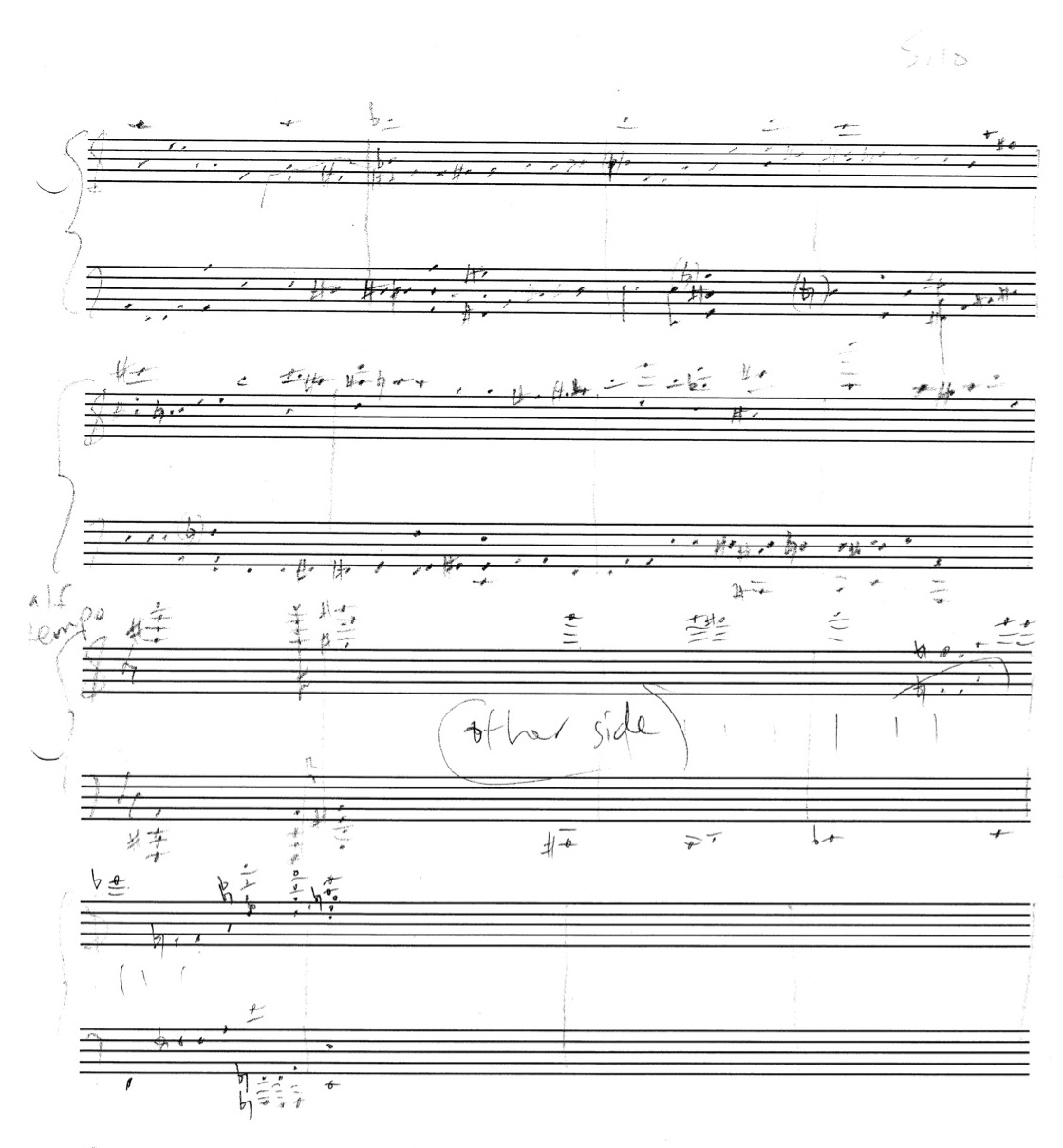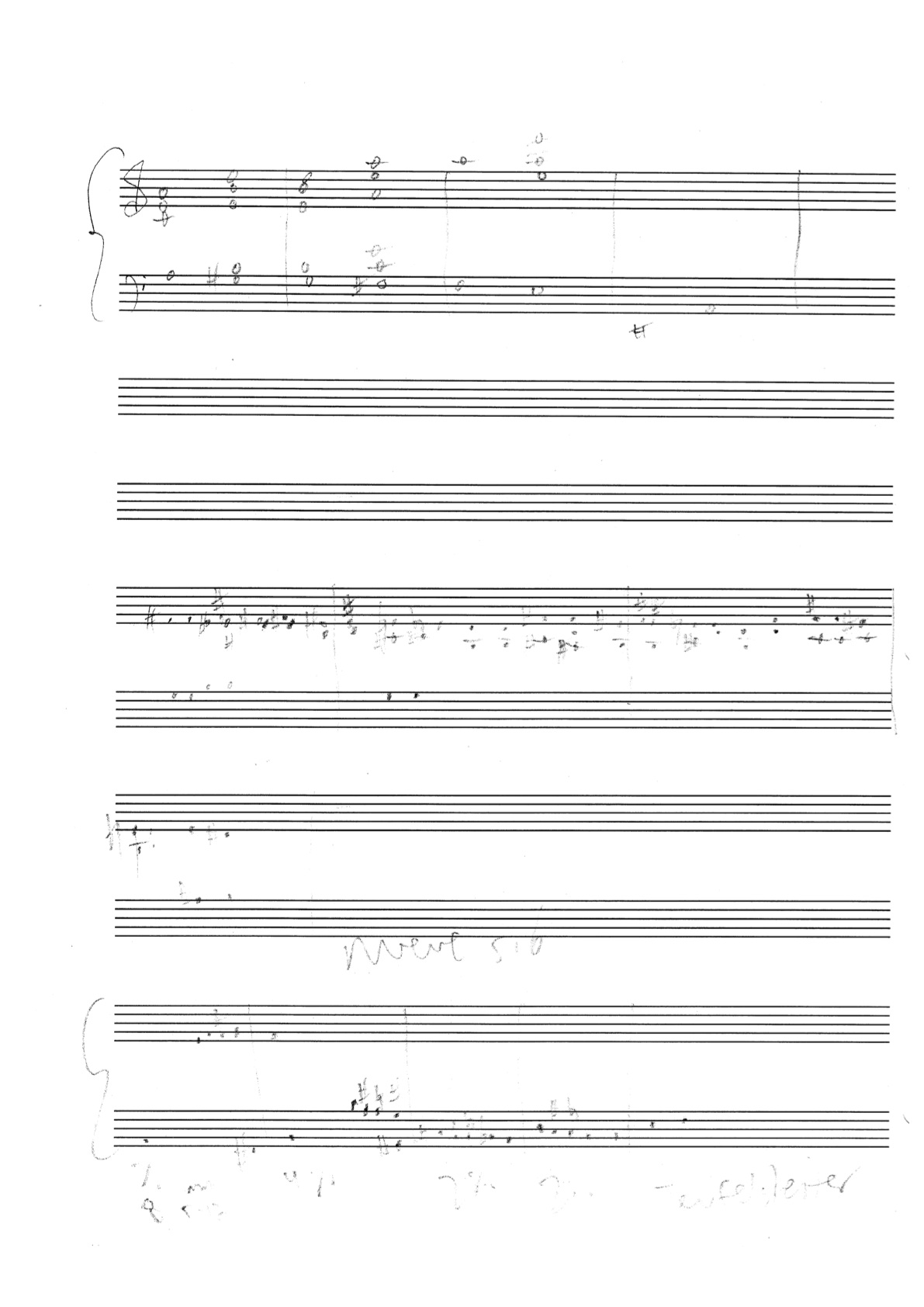 a sketch – made later – of music that was eventually inserted between the third and second to last staves on the above page: