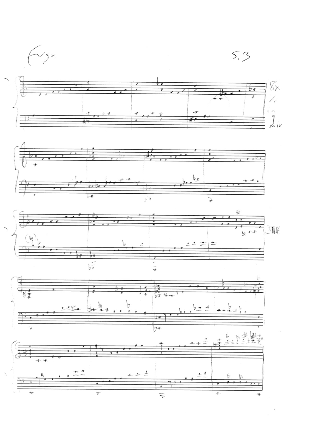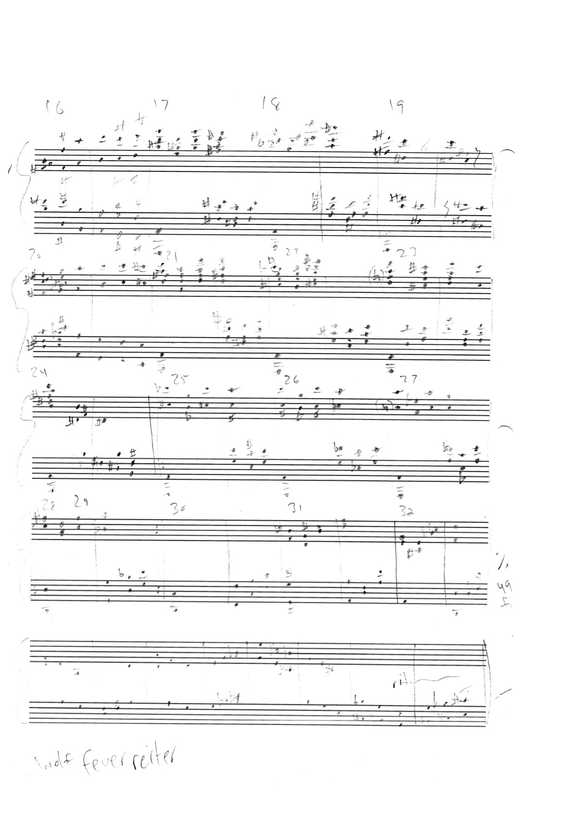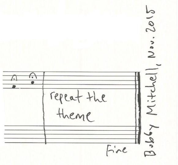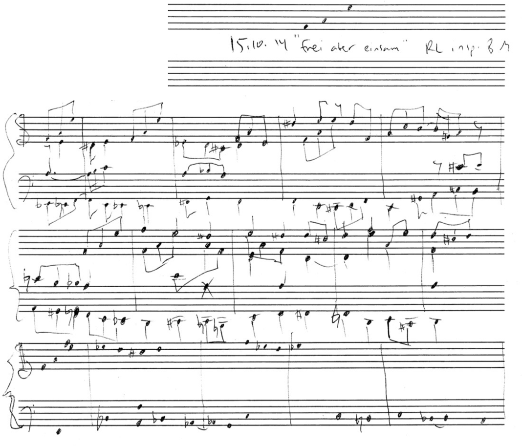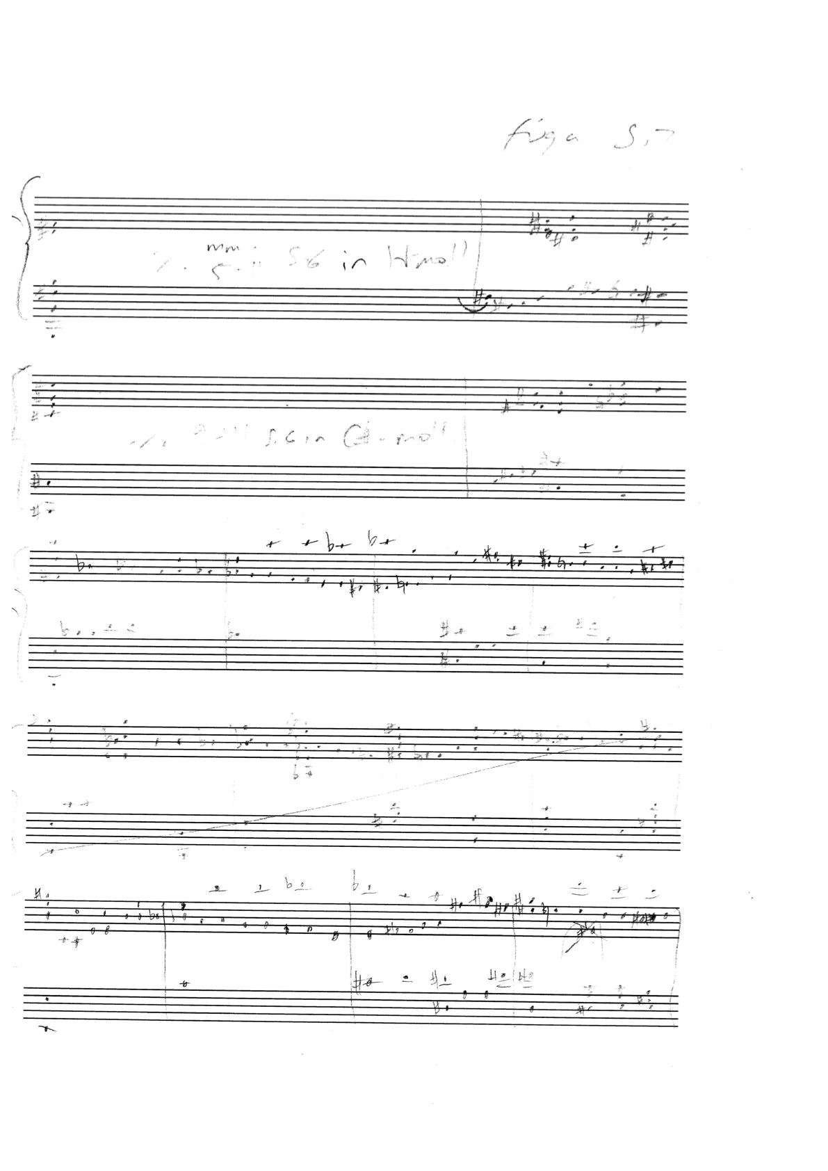 a sketch – made later – of music that was eventually inserted between the third and second to last staves on the above page: