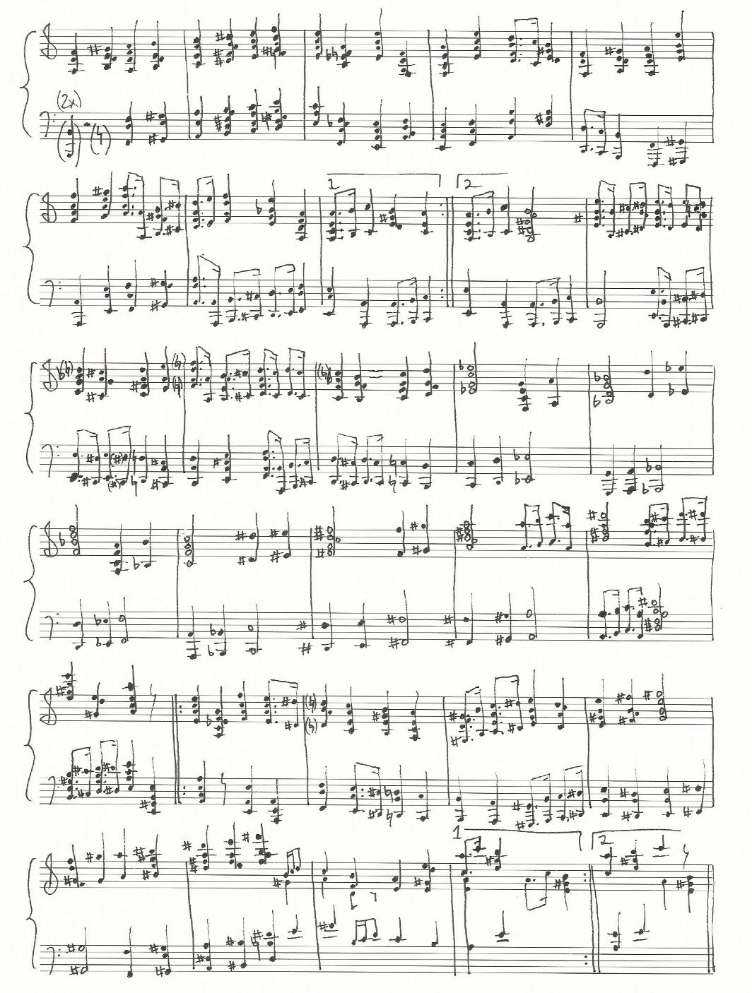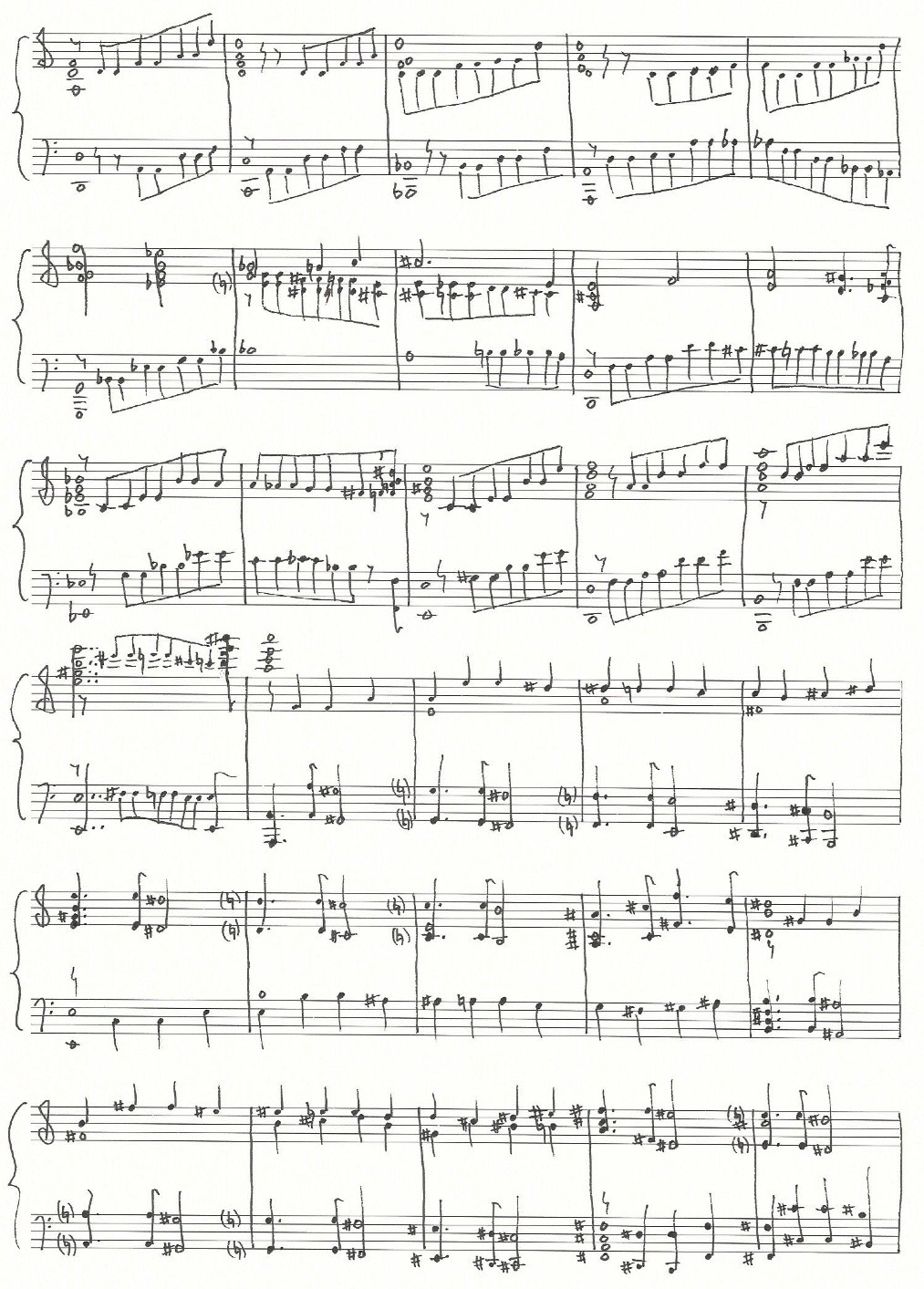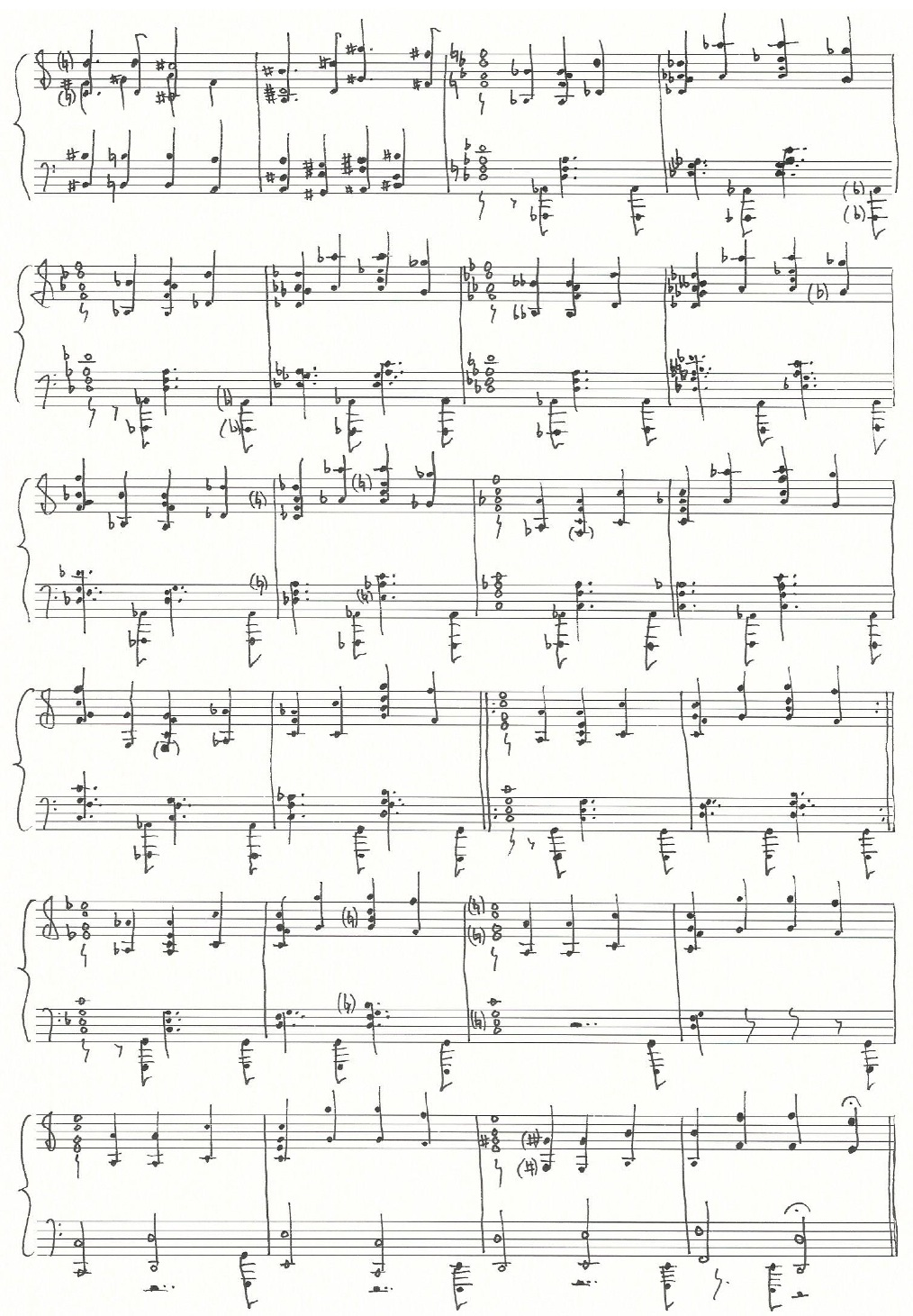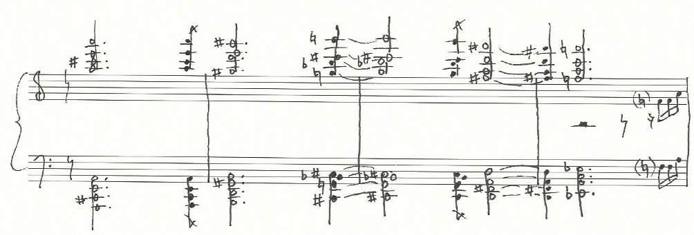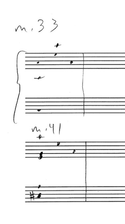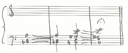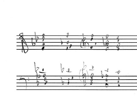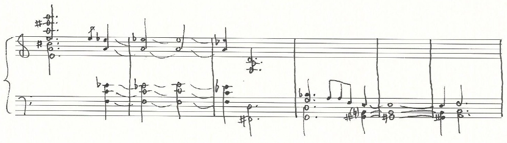 a sketch of the harmonic reduction of the music written at the bottom of page four and the beginning of page five (above):