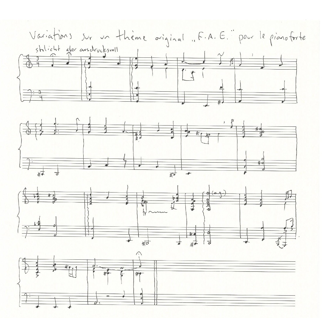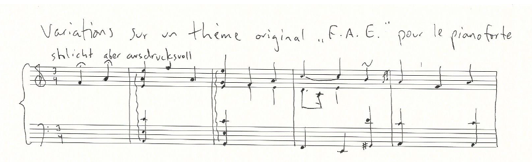 two early sketches of music related to the F.A.E. theme but which never made it into the final composition: