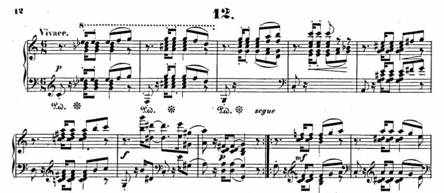 left, below: an initial phrase of a slow variation in F Major