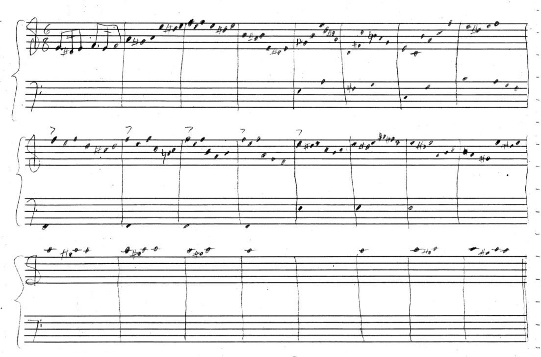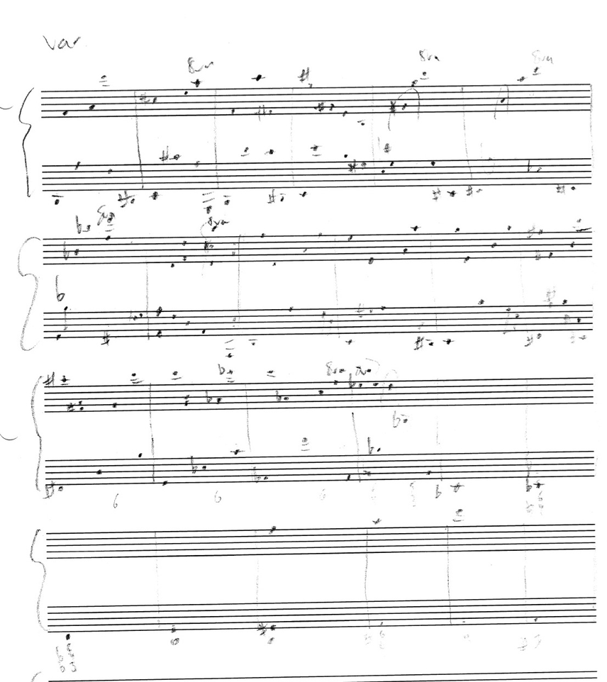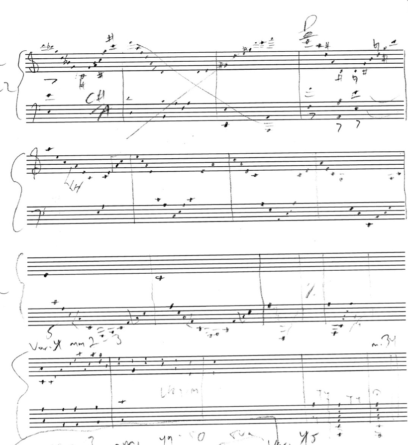 below: the initial sketch of music which similar rhythmic content to the fourth variation