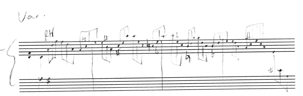 and the first sketch of Var. 1 that was legible enough to have been used for practice purposes as well: