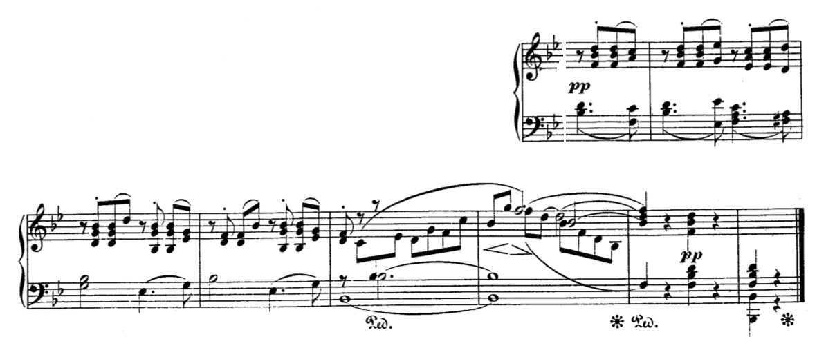 Both performances continue in the same vein as Schumann's original first and last bars of the piece. While the first flows more naturally and contains fewer harmonic ambiguities than the second, the second contains two structural moments that give the music more of a sense of structure: a relatively clear cadence to G minor at [1:19] and a cadential pedal point passage from [1:35–2:08].
