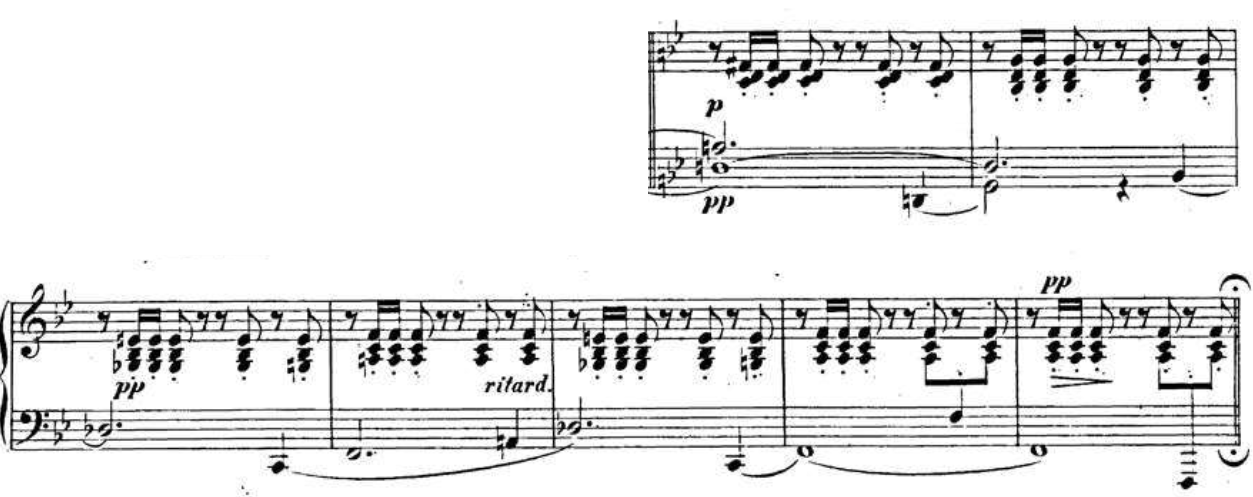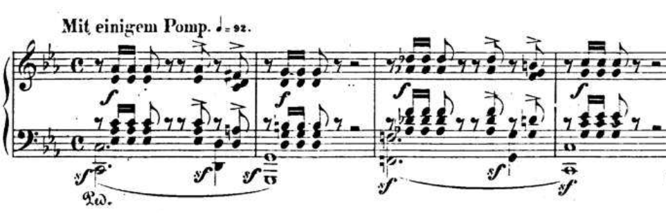 Schumann's notated fermata over a double-bar line, preceding the music entitled Zum Beschluß, inspires me to play a cadenza at this moment in the performance. It is generally tempting to begin the cadenza with the same march-like material as the preceding music. In the second recorded performance here above, I landed upon a quote of a prelude by Rachmaninov without having intended to do so and also without having practiced in order to be able to do so in advance. Harmonic variety is most apparent in the third audio example, recorded live in Brussels in 2016.