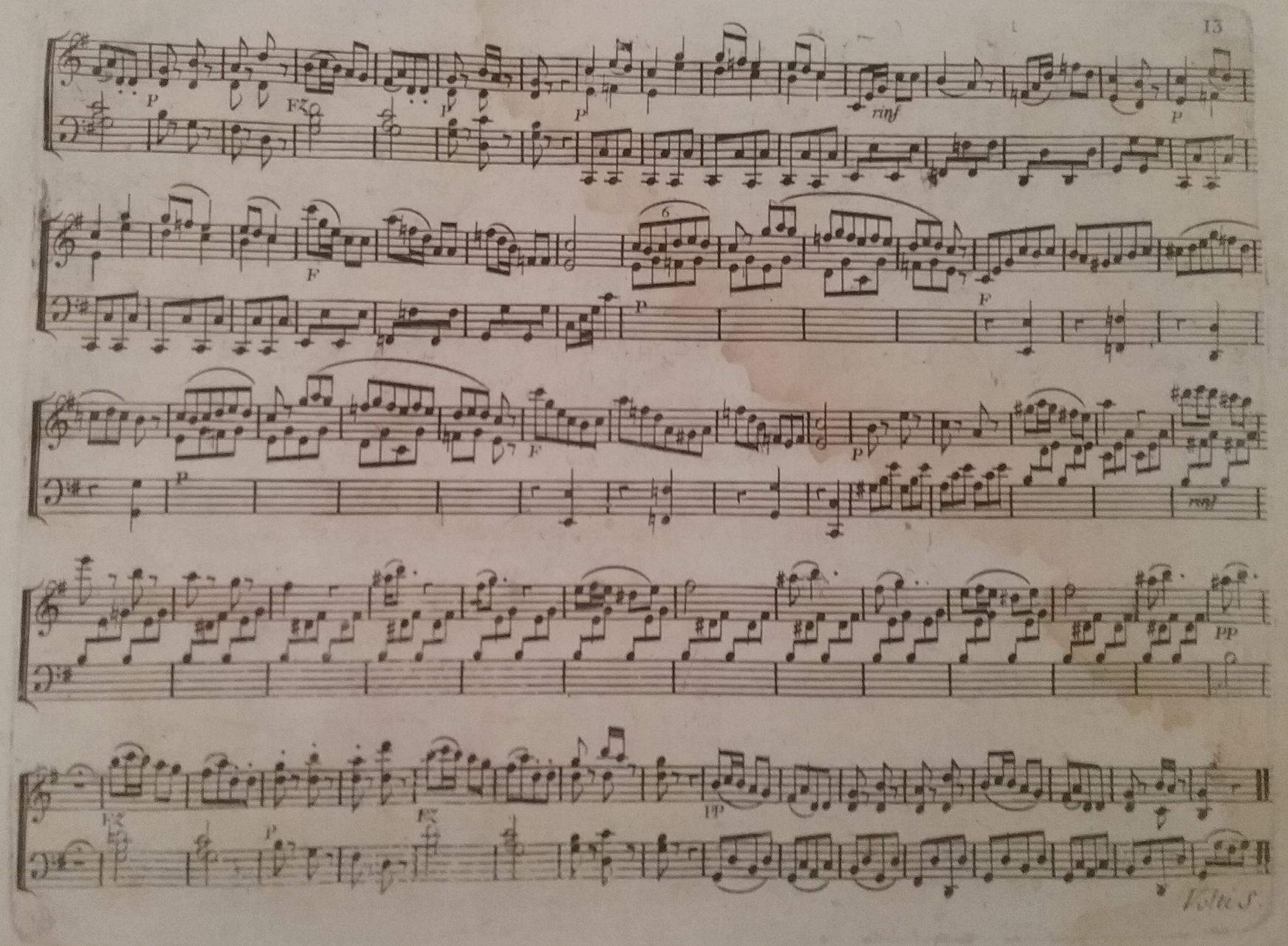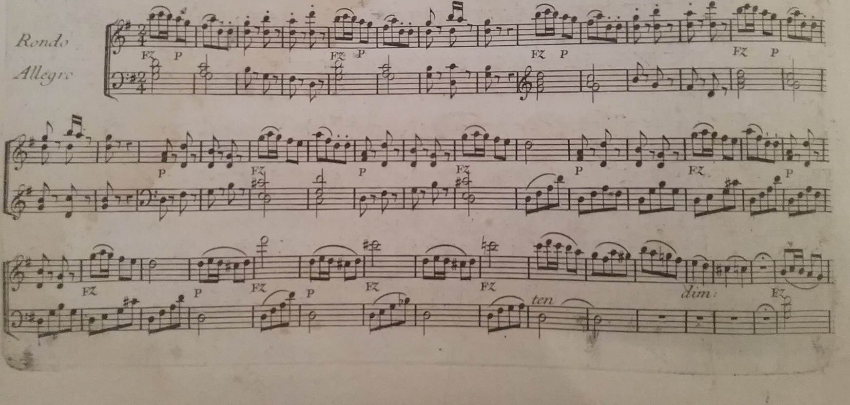 Prior to performing the music heard in the recording above, I spent about an hour with Rudolf Lutz learning to play this Clementi Rondo in the manner presented as the first practice strategy proposed in the Practicing subchapter of this chapter – an exercise that inspires the player to find numerous plausible versions of how the music could continue while looking at a particular score for the first time. After looking at measures one and two, I found various plausible realizations of measures three and four. Then, after looking to see what Clementi composed in measures three and four, I searched for versions of measures five and six, etc. I continued this process, with Lutz present, until we reached the fermata in the second to last measure on Clementi's first page, here to the left.