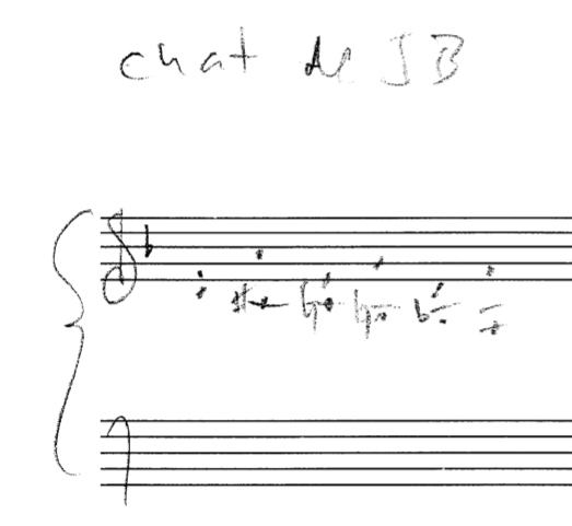 Most of the preparation and planning for the performance of JB's cat took place at the piano prior to this recording. The only written contribution can be seen here below: