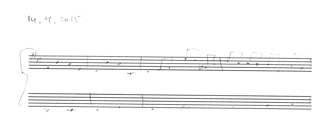 Practicing efforts were channeled towards playing the four-bar notated phrase as written, followed by a similar phrase to end in the dominant key, in order to then repeat the whole eight-bar structure but end in the tonic key the second time around. This can be heard from the beginning of the audio file until [0:55]. Certain weakness in my ability to play in B Major can be heard from ca. [1:31–1:35], and the repetition of the middle section from [1:33–2:14] without any contrasting figurative material or added forward motion comes across as redundant and uninteresting.