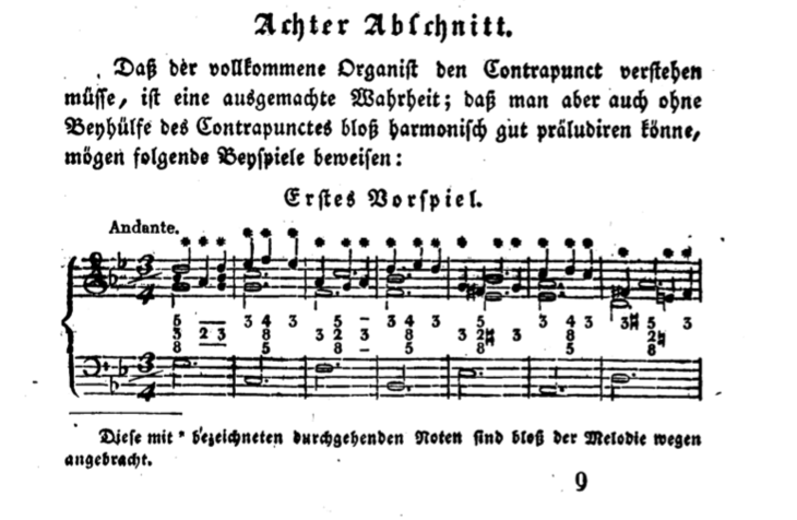 Da aber bekant ist, daß Präludiren und Fantasiren eine Art der Komposition ist, welche aus dem Stegereif hervorgebracht wird, so sollte jeder, der sich dis zu thun wagen will, erst zu Hause im Komponiren sich üben, ehe er den höchsten Grad der Komposition mit Ehren wagen und auszuführen sich unterstehen wollte. (Petri 1782, 266)