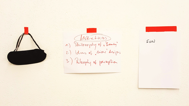In order to examine spatiality, participants were first introduced to the fundamental tool and instrument to be used throughout the workshop: the blindfold, an aural enhancement device (AED).