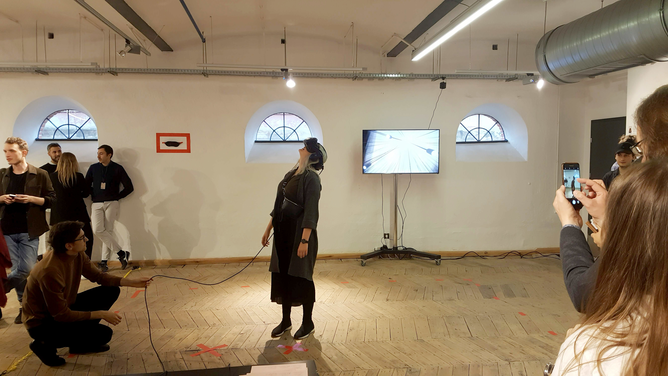 To expose participants, who were coming from an architectural background, to aural aspects of space, the first part of the workshop involved practical listening experiments. Wearing a blindfold, they were asked to examine space as a composition of a spatial scene as well as through a dérive.