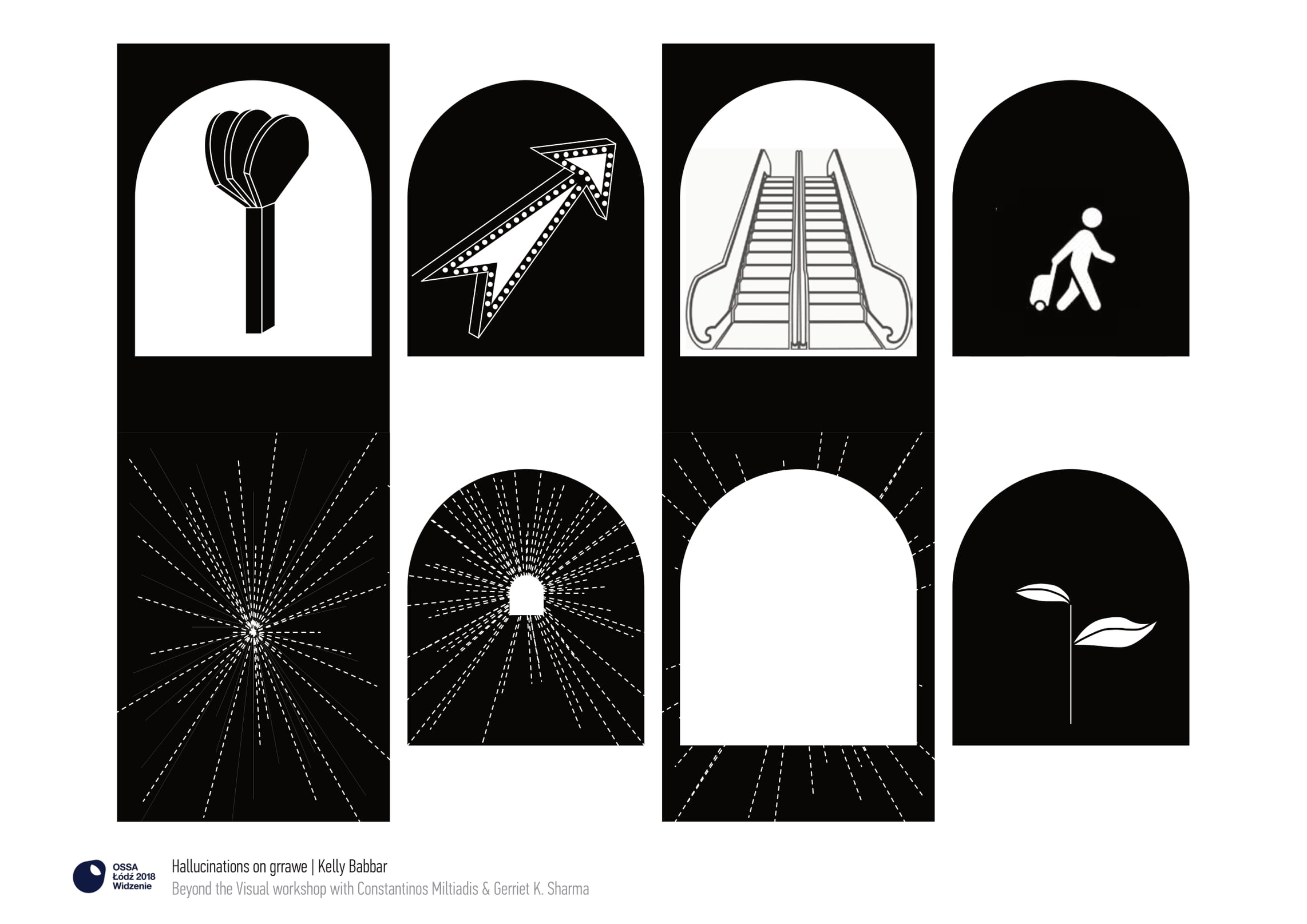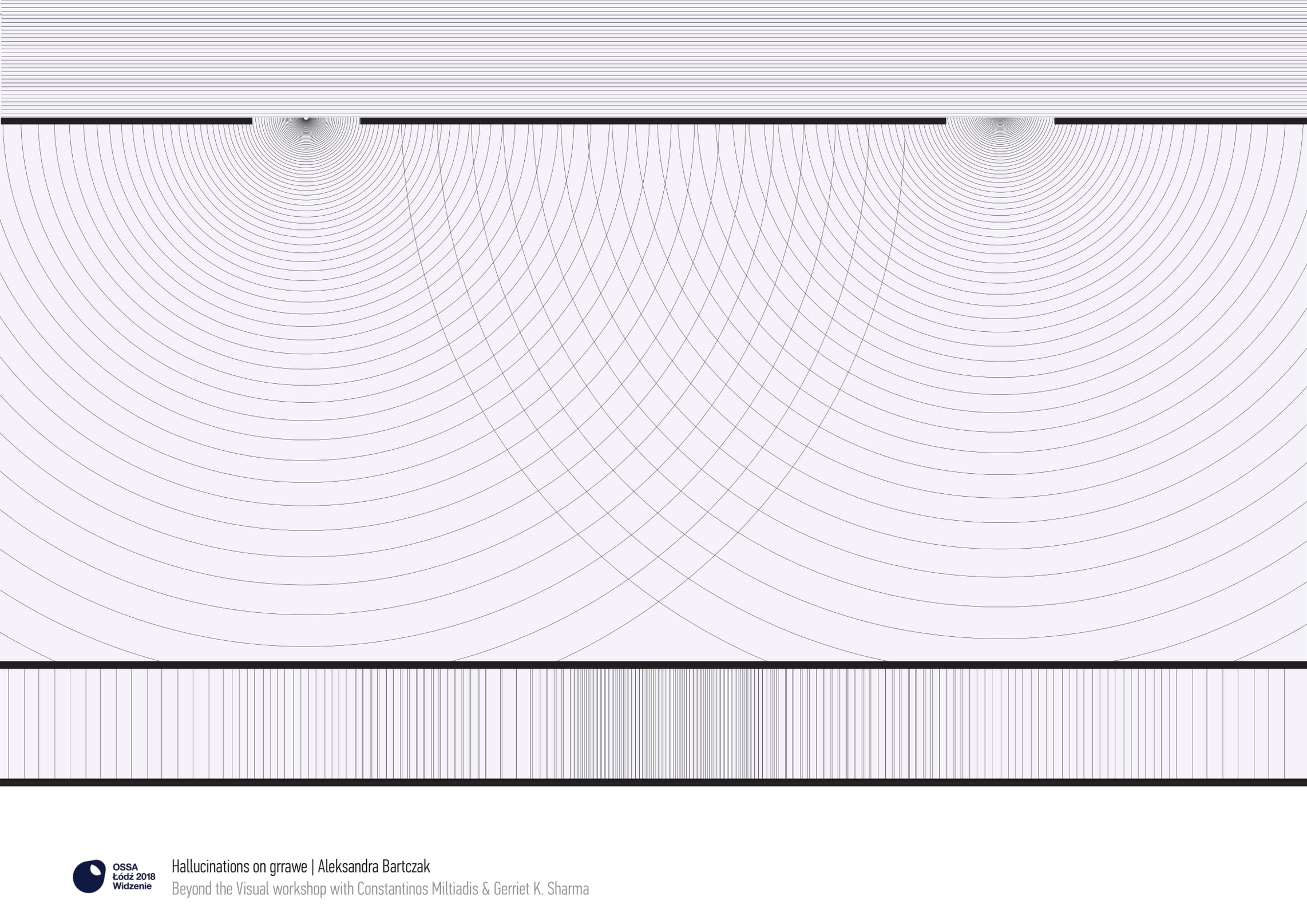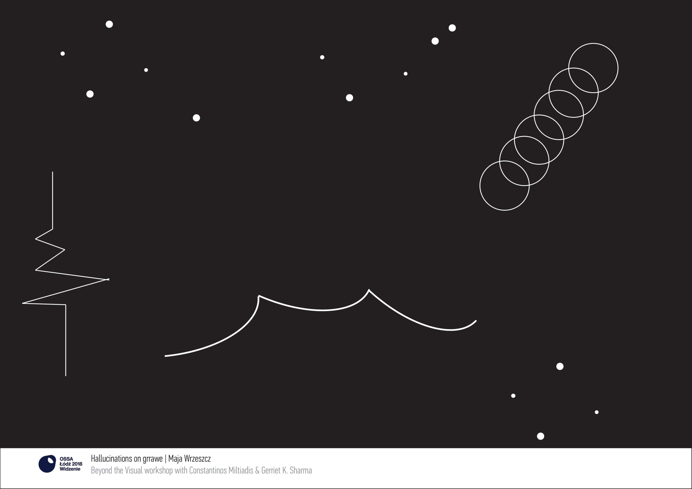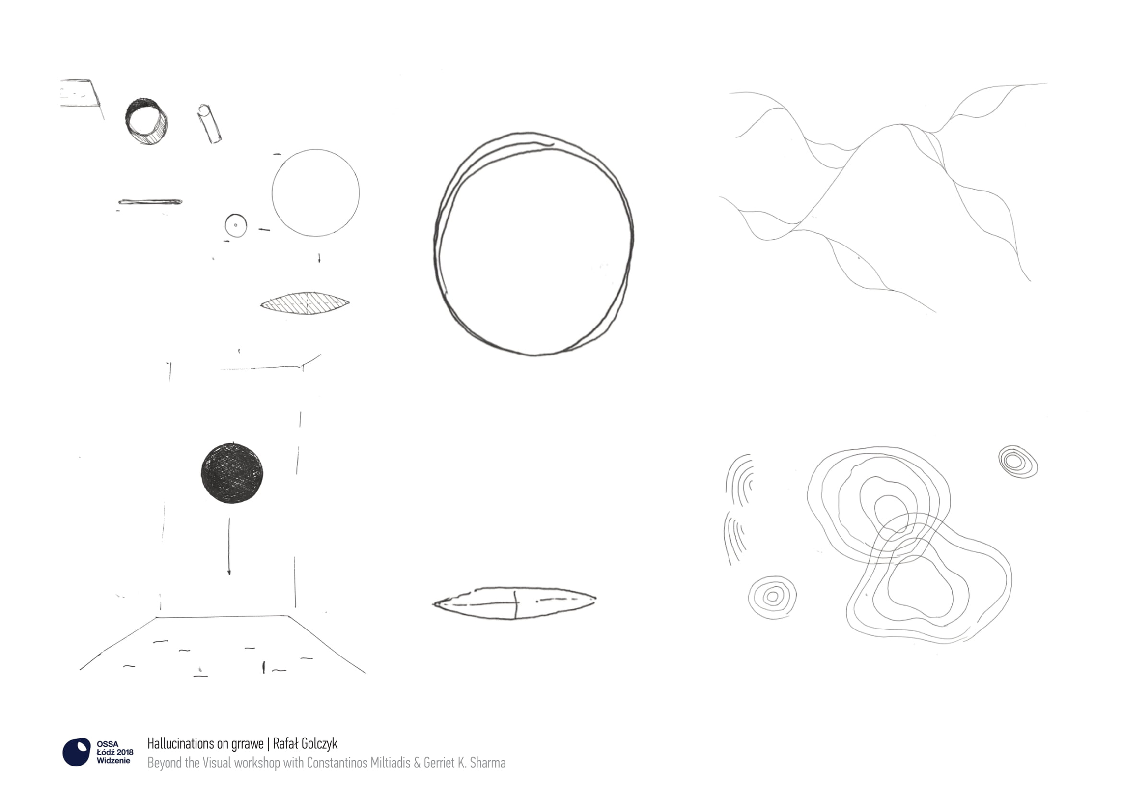 Wearing blindfolds as AEDs, the participants performed blind listening experiments of the binaural piece 'grrawe' in order to focus on its spatial qualities through hearing. Then, they were asked to put down the spaces they 'saw' through this experience, which was carried out in two ways: through notes and descriptors, marked on the waveform timeline, that concerned particular moments or time segments of the piece, as well as via sketches that visually articulated and elaborated their impressions. The experiences and 'hallucinations of space' were presented and discussed within the group in addition to the context of the previous readings and exercises.