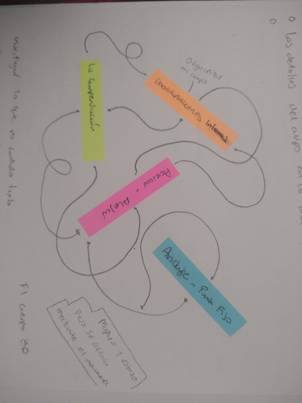 Al terminar cada Laboratorio, charlabamos sobre las sensaciones, pensamientos y evocaciones más relevantes a partir de la experiencia corporal. Cada una registraba en su bitacora ( cuaderno) las preguntas, reflexiones y dibujos sobre el laboratorio. le ocntabamos a Hilse como nos sentiamos y las relaciones que encontrabamos con la vida cotidiana, otras practicas de la danza y la escena.