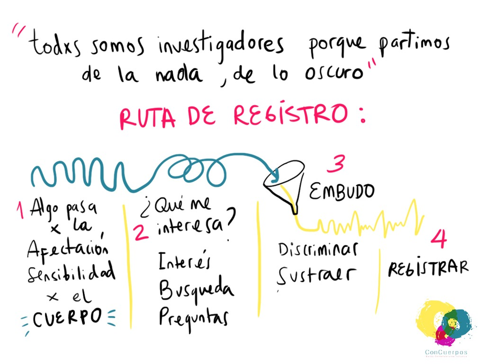 La primera tarea consistio en exponer las herramientas y posibilidades de registro, desde una observación sensible, objetiva que buscaba la descripción, asi llegamos a tres acciones para identificar la ruta para registrar nuestra experiencia en el laboratorio, pero sobre todo nuestras visión sobre la tecnica, aplicada a nuestros cuerpos.