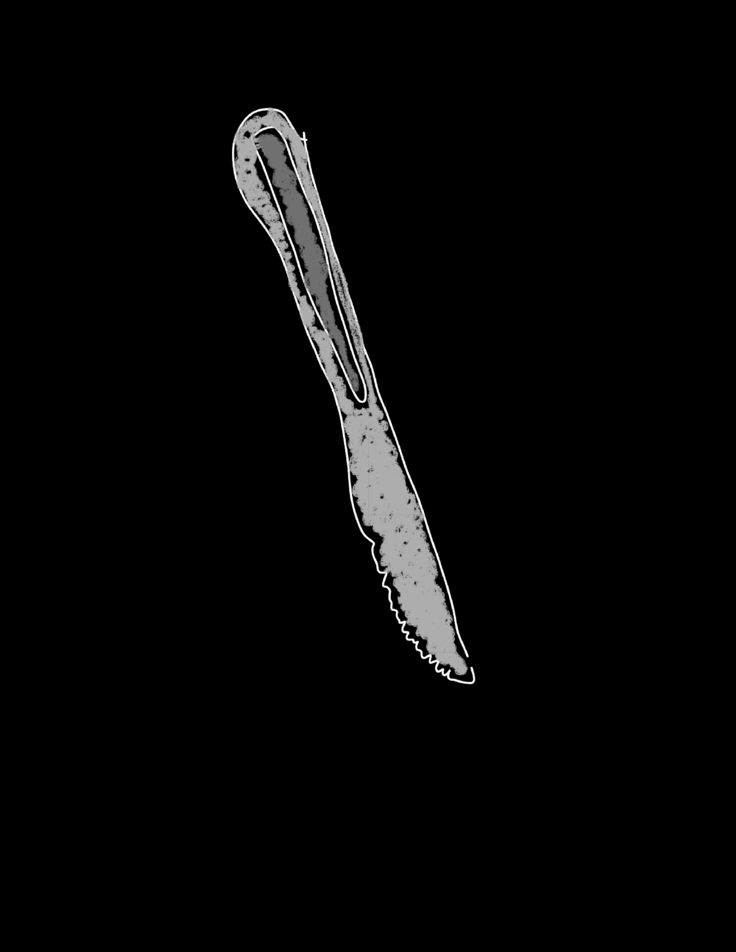 Realizamos la misma exploración con un cuchillo en la mano, este objeto me genero la sensación de movimientos lineales y de trayectos rectos. Me impresione al sentir el cambio con la carga simbólica del objeto, peus este al contrario del saco no me generaba una afectación desde su peso o su forma, sino desde su significado. Me genero más atención y cuidado en la manera de moverme,
