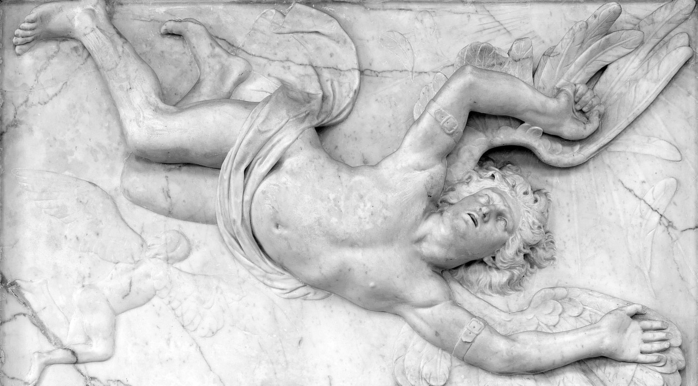 Icarus (7 minutes 52 seconds duration, stereo, fixed media) is an electroacoustic acousmatic composition mainly based primarily on airplane sound recordings. The goal was to create an acousmatic work inspired by the myth of Daedalus and Icarus. It is unclear who is credited with the myth of Daedalus and Icarus, but the name Daedalus was most likely attributed to one hero through the accomplishments of many different people over the years, until it was first noted by Homer (750 BC – 650 BC) and the ancient Greek tragedian Euripides (480 BC – 406 BC). Later, a Greek scholar, grammarian, and historian named Apollodorus of Athens (180 BC – 120 BC), a Greek historian named Diodorus of Sicily (1st century BC), two Roman poets named Virgil (70 BC – 19 BC) and Ovid (43 BC – 17 AD), and a Greek traveller named Pausanias (2nd century AD) all made references to Daedalus. According to the myth, Daedalus was a brilliant inventor who worked for King Minos of Crete at Knossos Palace. He was the architect of the Palace’s labyrinth, which housed the Minotaur, and he was the only one who knew how to escape. He infuriated King Minos. Eager to leave the island, Daedalus used wax to make wings for himself and his son Icarus, who, disobeying his father, flies too close to the sun, causing his wings to melt and him to fall into the sea and die.