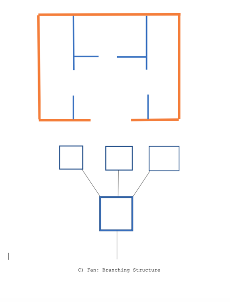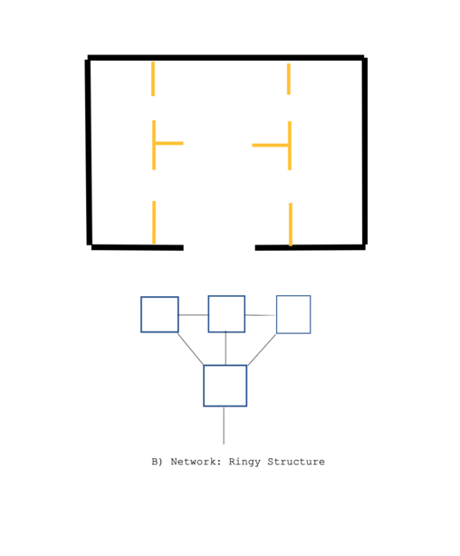 These images attempt to understand the issue of power and social logic in relation to built form. I used the space syntax analysis method developed by Hillier and Hanson in their book The Social Logic of Space (2003), in which they interpret, building plans into three primary spatial syntactic structures.
