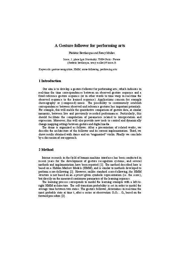 The Interactive Installation Double Skin/Double Mind is a virtual interactive version of the Double Skin/Double Mind workshop. This workshop, which has been taught by dance company Emio Greco | PC since 1996, represents the basis of the creative work of choreographers Emio Greco and Pieter C. Scholten. Participants in this workshop are challenged to discover new interpretations of their dancing body through the movement tracking program Gesture Follower developed by Frédéric Bevilacqua (IRCAM). As result of this comparison different feedback, including emotive icons, sonification and text displays is given through an interface lay out developed by Chris Ziegler. Participants are accompanied by different visualization and sonic information while mentally and physically travelling through the Double Skin/Double Mind structure. Professional as well as non-professional dancers are invited to experience this installation.