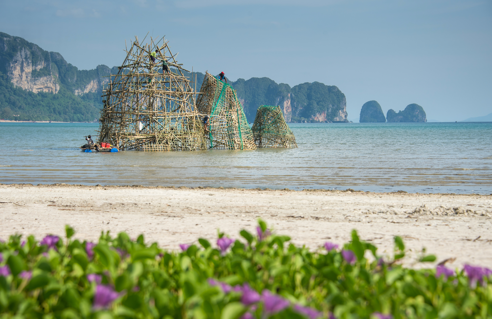The site visits to Krabi were conducted not only for proposing artwork and projects in situ, and generating artist-curator discussions, but also for bridging the gap between a biennale and local communities whilst negotiating with the policies and regulations of the authorities. This biennale was only made possible through substantial collaborations with a variety of contributors in Krabi, including, local architects (Dolven), craftsman (Streitmatter-Tran), school children (Blume), folk musician (Wrånes), fisherman (Winderen), sea gypsies (Map office), gardeners (Zheng), farmers and villagers (Karga).