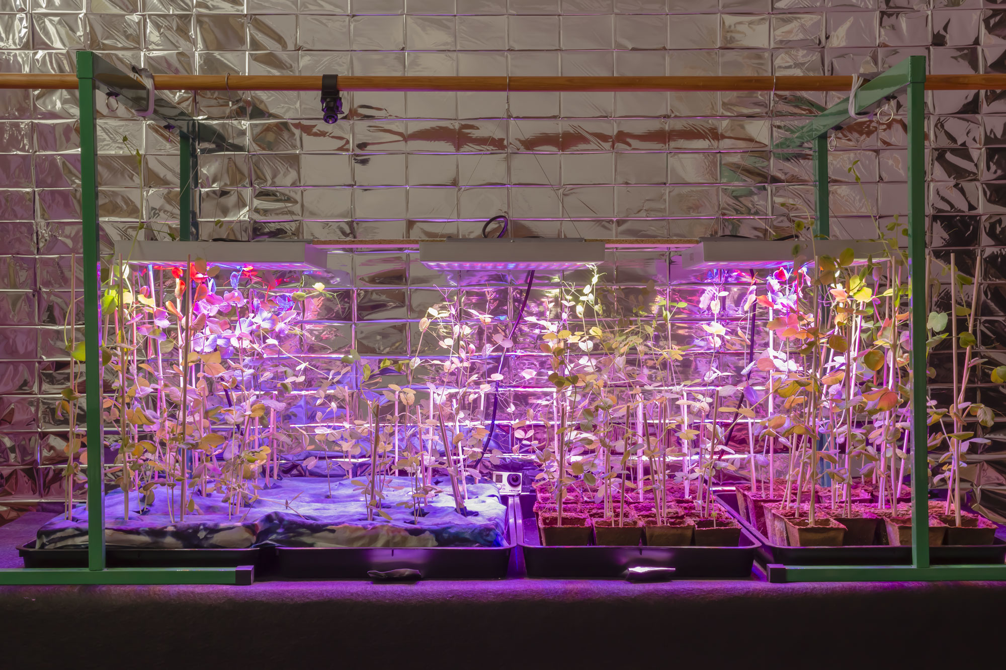 Within the project I am researching, developing and cross-breeding a flora of transdisciplinary experiments, new material studies and processes, that revolve around ways of rethinking, creating for and becoming with other life forms. Photographic, biosynthetic and agricultural methodologies are being used in Cogito ergo Pisum to both analyze and synthesize new ecologies. On the basis of horizontal (gene) transfer, hybridity and hospitality, a number of agents, patients and symbionts have been subject to material-semiotic and transgenic inquiries: Timo the artist and Timo the grey pea — bioart experiments involving horizontal transfer of my DNA to a grey pea cultivar (Pisum sativum var.arvense). Pisum Sativum used by Gregor Mendel in 1856 when unfolding many of the rules of heredity, now referred to as the laws of Mendelian inheritance, constitute a key plant in "Cogito ergo Pisum". Epidermodysplasia verruciformis, also known as Tree Man Syndrome, an extremely rare autosomal recessive genetic hereditary skin disorder, and Foliate heads, also known as Green men, constitute a highly symbolic reading of a hybrid plant-human being.