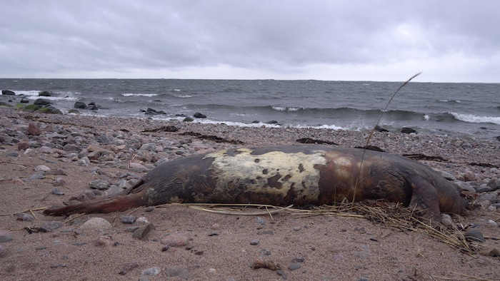 Day 20 — Due to the pandemic, I extended my stay at Örö. The sea brought a dead seal back to the island. It was here a month ago, but the waves took it back. First, it was on the beach in front of the residency’s house. I observed for minutes the restless body that surprisingly was not smelling so severely. The winter temperatures saved it from complete decomposition. Black and white fur used to cover most of the body that now unveils its exposed leather. The belly became transparent due to the impact of the rocks that ripped the surface apart. Through the stomach, I can see most of its orange-coloured digestive organs and intestines. I wondered what happened to the rest of its body. Mainly, I asked myself if it had a fulfilling and happy life, or even if those anthropomorphic concepts could be applied to non-human creatures.
