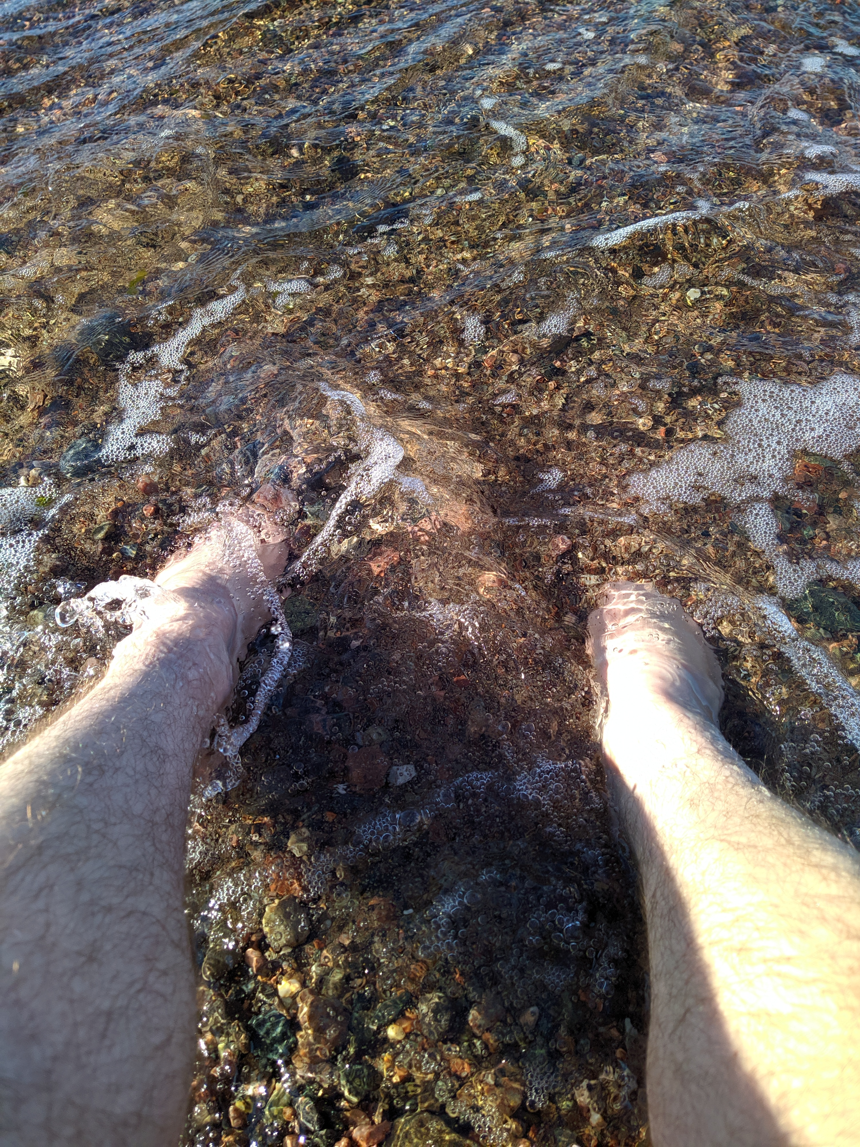Day 16— Putting headphones on and listening to Flume—Never be like you , while putting my feet into the sea.