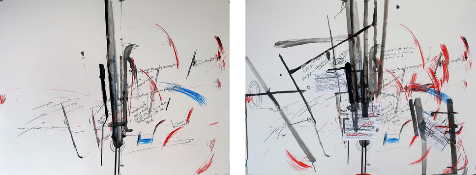 A voice extracted from a 44: 35min video of the process of making a drawing, showing two later spoken recordings that intervene between