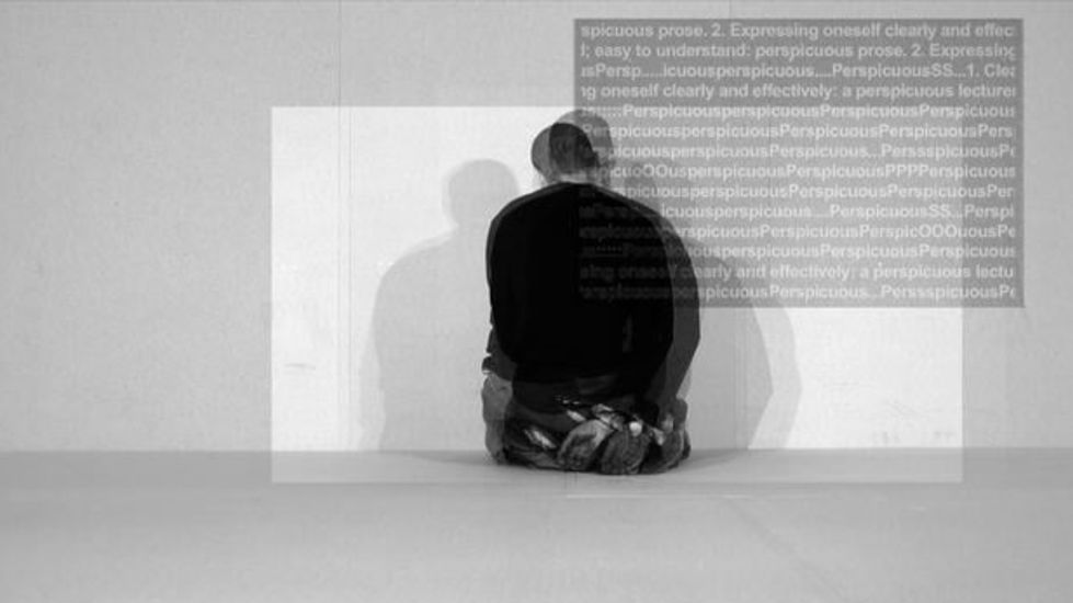 3.Video still from Perspicuous / Helppotajuinen 2009, duration 5 minutes. Before undertaking this piece, I was unable to read the word perspicuous in English or the word helppotajuinen in Finnish, or make sense of the sounds the spoken words were formed from. I could nonetheless understand the meaning of the words very clearly.