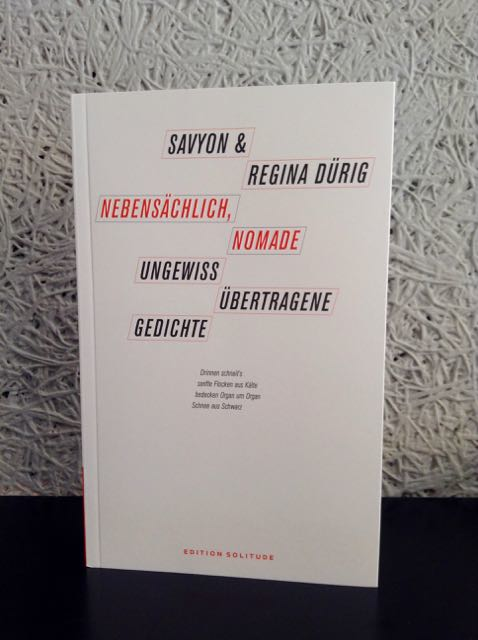 In the experimental translation project “Nebensächlich, Nomade”, which I have realized with Isreali poet Savyon, we brought poems from Hebrew to German without knowing the other’s language, just hearing its sound. Translation thus was “an asymptote: no matter how close we try to get, there’s always a space between the two bodies and that is the space where we live” (Antena 2014: 1). When we first met at Akademie Schloss Solitude, Savyon told me that her texts are untranslatable, as a friend of hers had told her. That’s when I knew that I had to try: Like a bird who understands nothing of what we hear, who hears what we do not understand (Roland Barthes).
