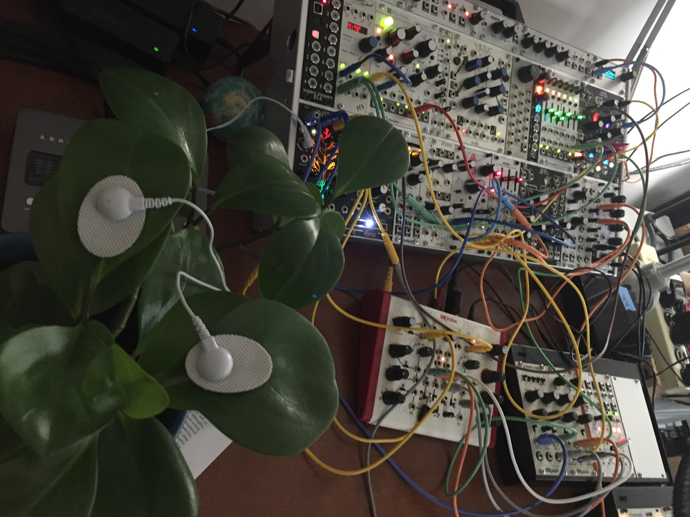 In Hello/Goodbye I animated three “alien” flowers, imagining that they are trying to communicate with us in the form of an abstracted song-and-dance routine. This work is inspired by Monica Gagliano, a plant biologist who investigates how plants use sound to share information. The modular synthesizer was connected to a plant, the electrical signals generated by the plant translated into voltages that could control the sound forms generated by the synthesizer. This is, in a fashion, translation of the electrical language of the plant into the electrical language of the synthesizer. I then used the animation software to have the animated plants lipsynch to the “song” the plants were singing to us. In this case, there are no English language phonemes to which to match the visemes. Rather, it is raw sound that is formed into patterns of utterances by both the plant and the animation software.