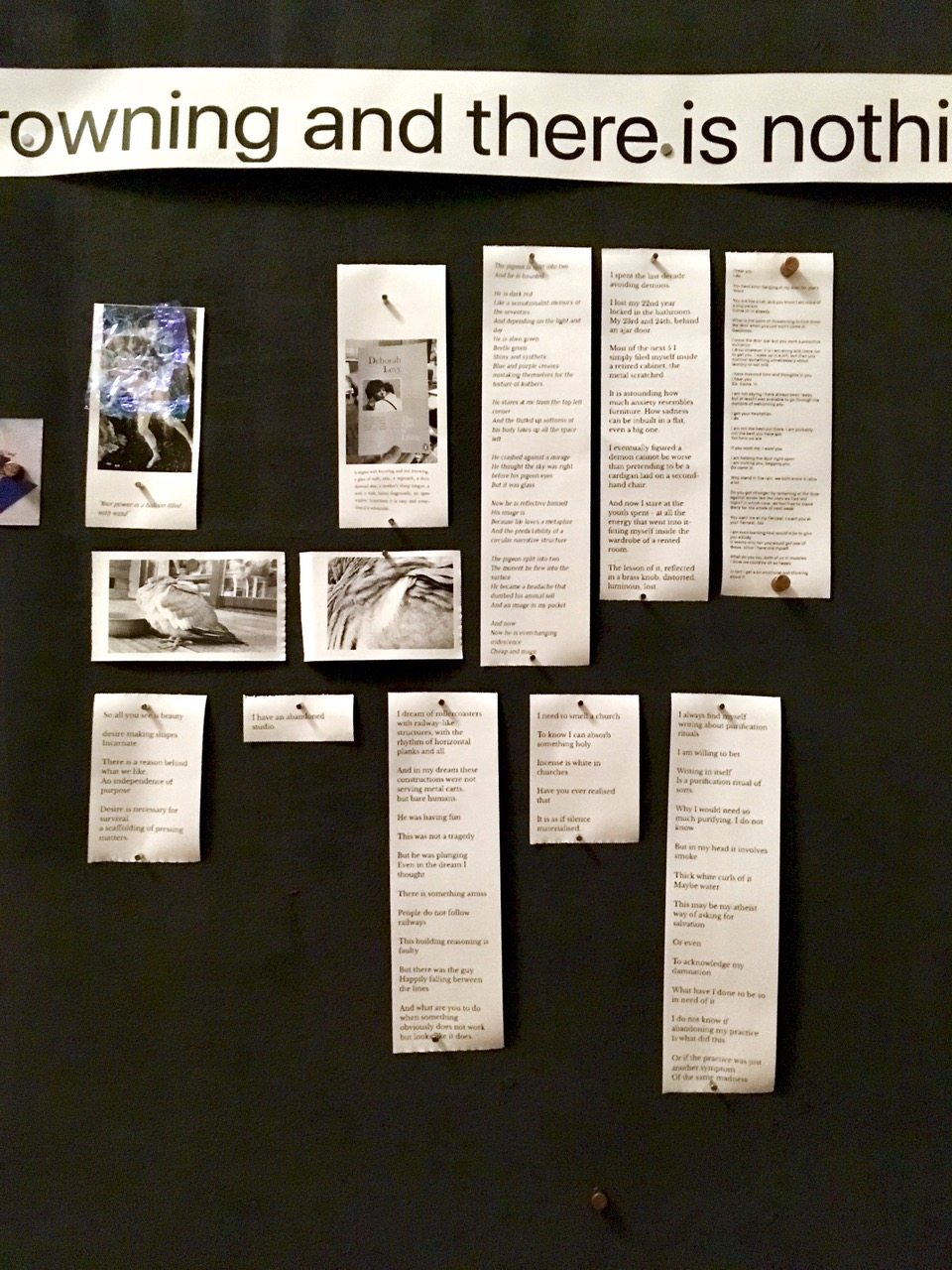They crash and weave with other existing texts (read, found, heard); mingling, creating porous opportunities for encounter. Each crash leads to a new meaning, a new nuance. The juxtaposition (also Warburgian) is as important as the writing and reading. It feeds back other materials, in a rhythmic exchange. My research is therefore fragmentary, full of gaps, gasps, intervals, and cuts - if it does not bleed, it has no pulse.