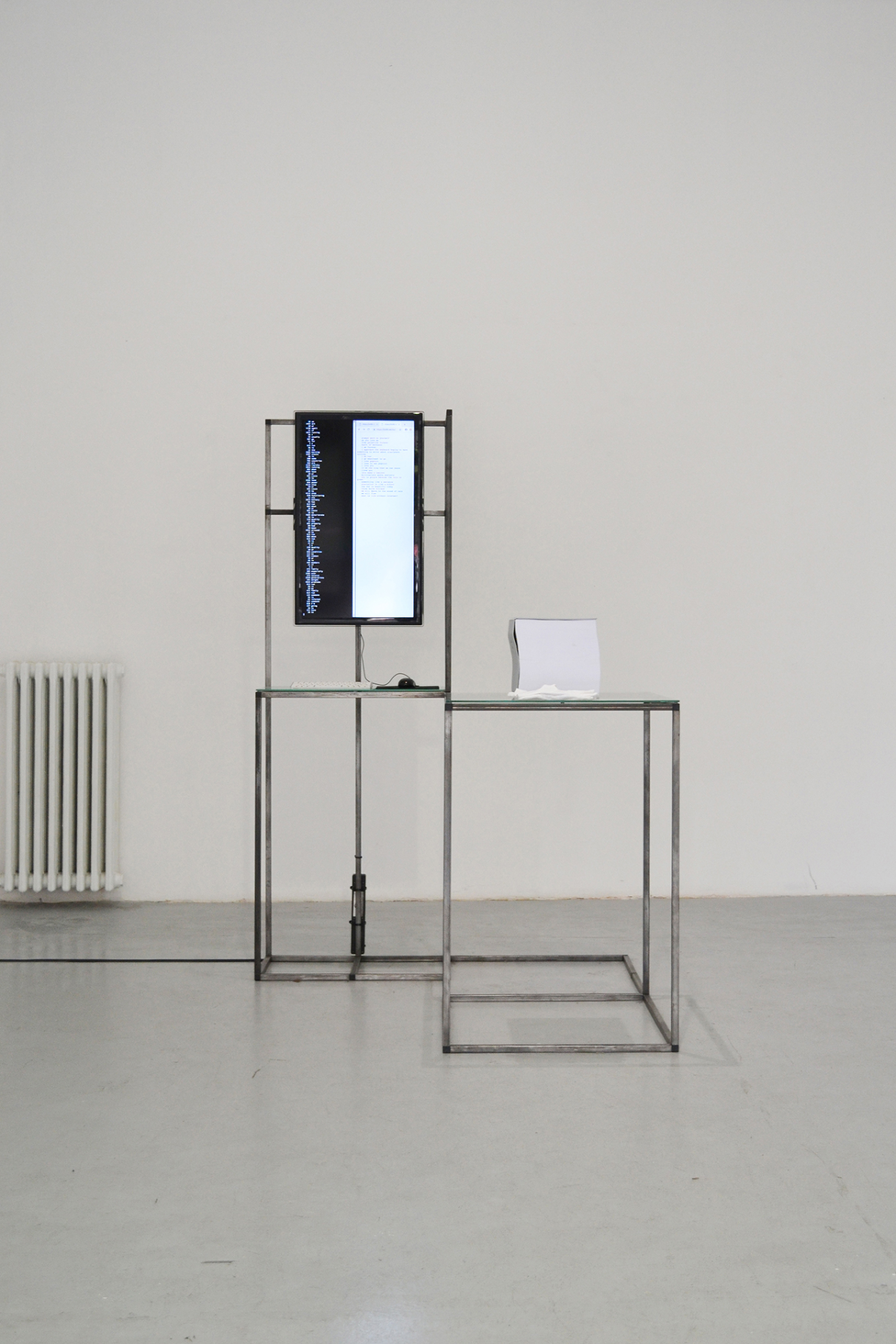 The concept of language has been the driving force of my artistic research and production over the five past years. Linguistic worlds/territories, rhetorical techniques in political speech, as well as science fiction literature constitute, amongst others, my current or recent areas of interest. The act of writing itself doesn’t seem to be for me the most effective way to look at the question of language, as we are always stuck in the house of language and the traps it sets for us. My recent artistic research is therefore carried out through various other formats such as video installation, performance, sound art, sculpture and curatorial projects, through which I aim to render visible some aspects of our linguistic symbolic universe(s).