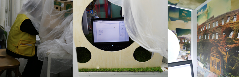 Upon arrival at the Help-Desk, the Voice (an invisible live-performer) instructs the Treasure Hunters (visitors) to write a todo list into one's individual note block. The Treasure Hunters are then invited to participate in different clue/score based walks in the large old brick building. At regular intervals the Treasure Hunters arrive at different communication zones where word-donation happens inside an interactive document. Inside this document, two hidden facilitators guide the synchronous writing, supporting the Treasure Hunters to translate lived experiences to words with the help of associations, questions and lists. In one communication zone the key-boards of the Treasure Hunters is connected to a computer that instantly mix the two donations into random new words. The average time spent inside Treasure Hunting was 3 1/2 hours. No matter when the Treasure Hunter individually decided that the own time was up, the Treasure Hunting system offered the person a check-out. At the check-out the purpose of the regular visits to the communication zones was revealed. Through out the experience the facilitators were working on distilling the words into an individual poem a “Wortschatz” (Vocabulary in German reads word-treasure). The poem was found by the Treasure Hunter and the Treasure Hunter was finally guided to a recording helmet where the treasure hunter recited his/her poem. The poem was automatically transformed into a music tune. A SuperCollider script cut up the phrases, applied a randomized vocoder melody to the voice and mixed it together with a pre-made jazz tune.